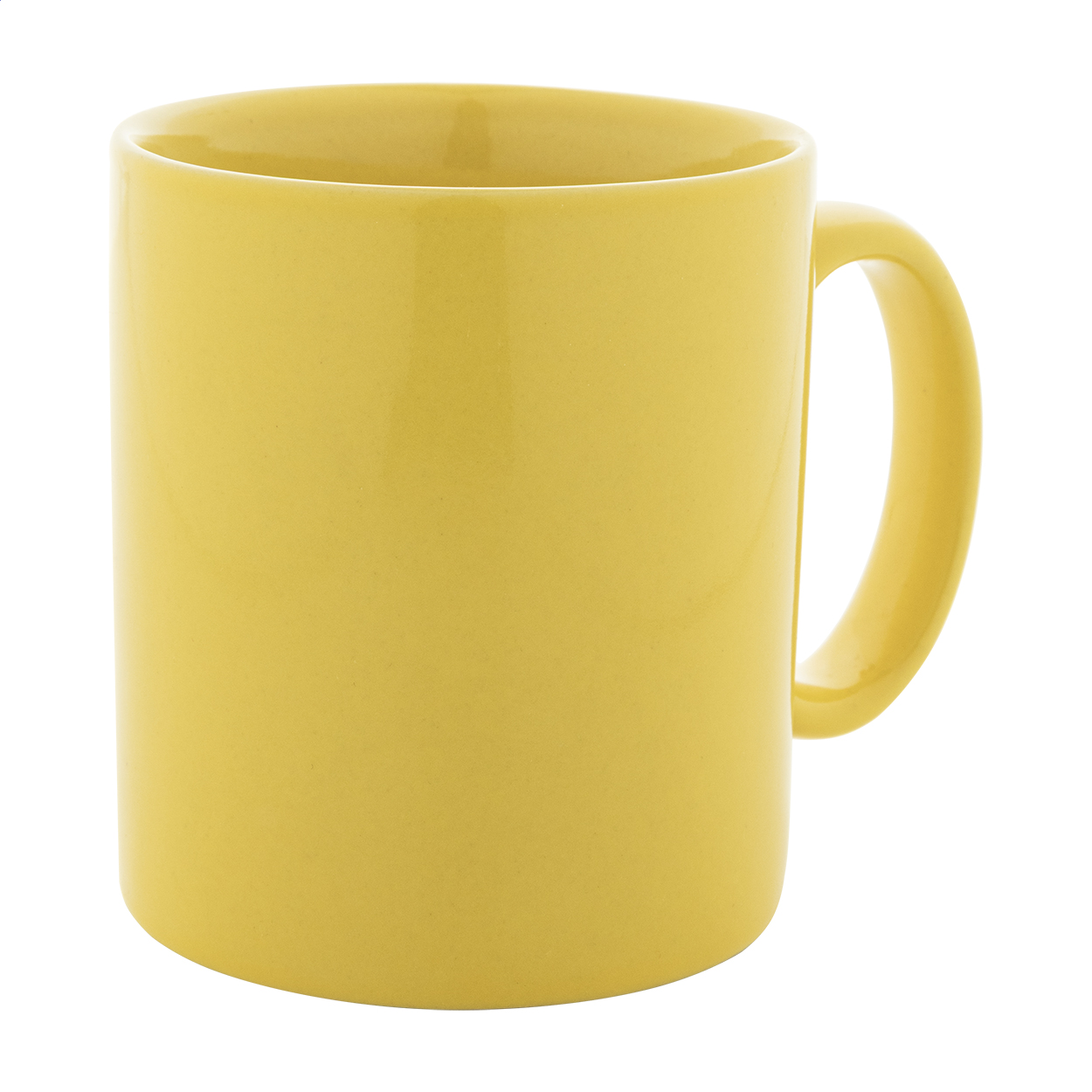 Klasszikus kerámia bögre színes, fényes felülettel, 300 ml. Kraft papír dobozban.
