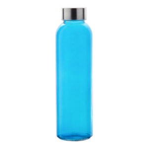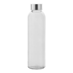 Átlátszó üveg kulacs rozsdamentes acél kupakkal, 500 ml. Ajándékdobozzal szállítjuk. Nem alkalmas szénsavas italok tárolására.
