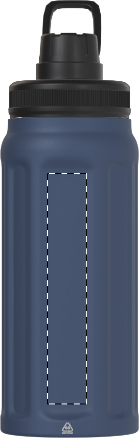 Duplafalú, újrahasznosított rozsdamentes acélból készült termosz függőleges barázdákkal. PP ivófedéllel és beépített hordozófogantyúval. 540 ml.