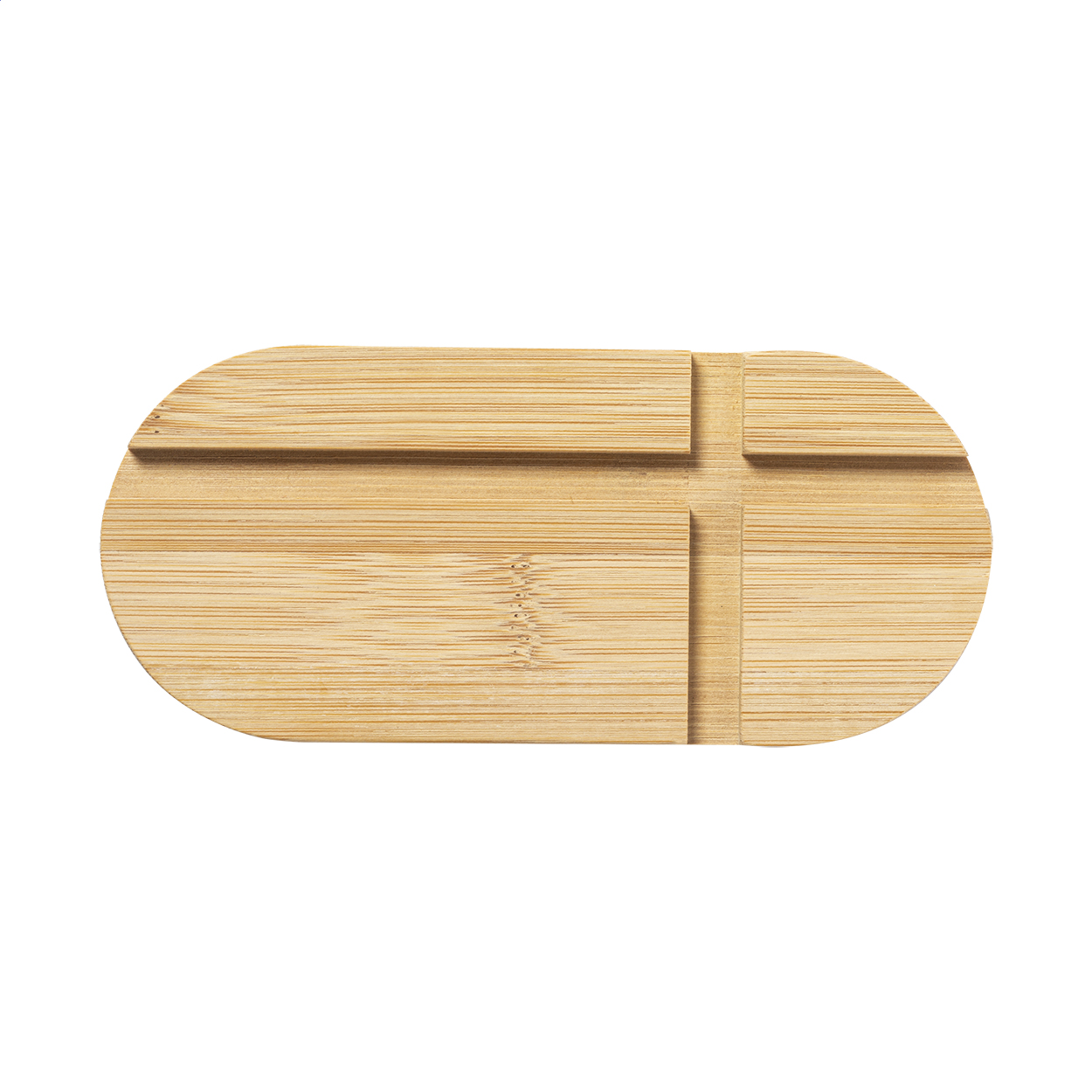 Bambuszból készült asztali mobiltelefon- és tablettartó.