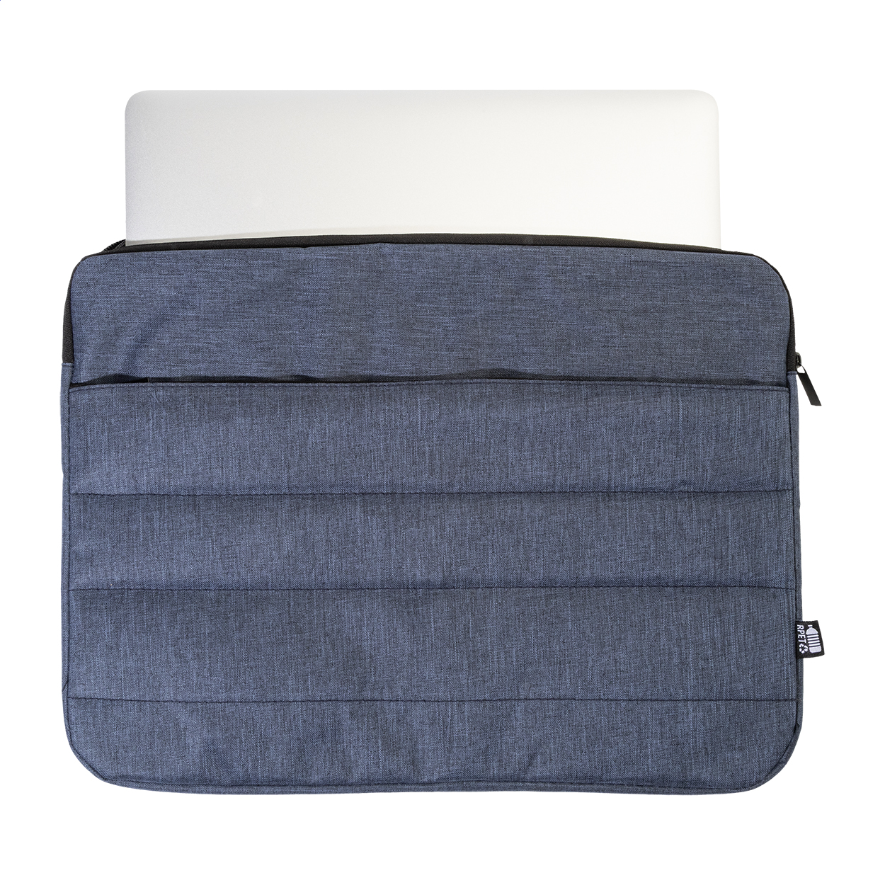 Teljesen párnázott RPET laptoptáska rekeszekkel. Kompatibilis 15" méretű laptop méretig. 300D RPET poliészter. Megkülönböztető RPET címkével.
