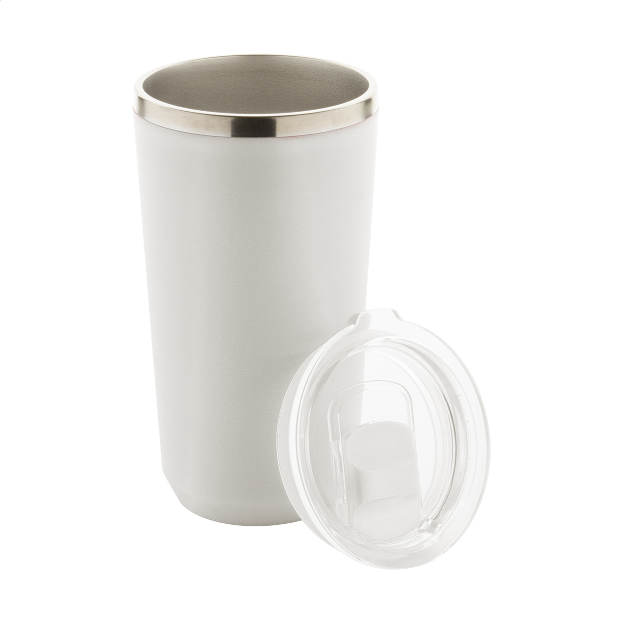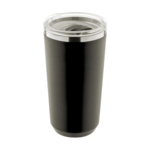 PP műanyag borítású, duplafalú, rozsdamentes acél termo pohár ivófedéllel. 500 ml.