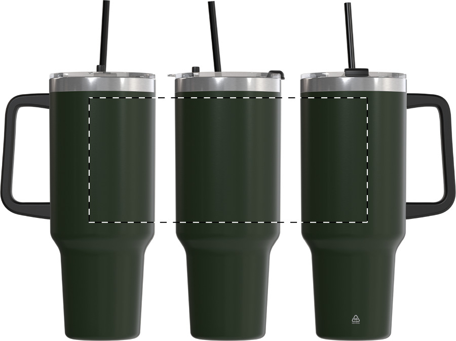 Duplafalú, újrahasznosított rozsdamentes acélból készült vákuumszigetelt thermo bögre PS ivófedéllel és PP szívószállal. 1200 ml.