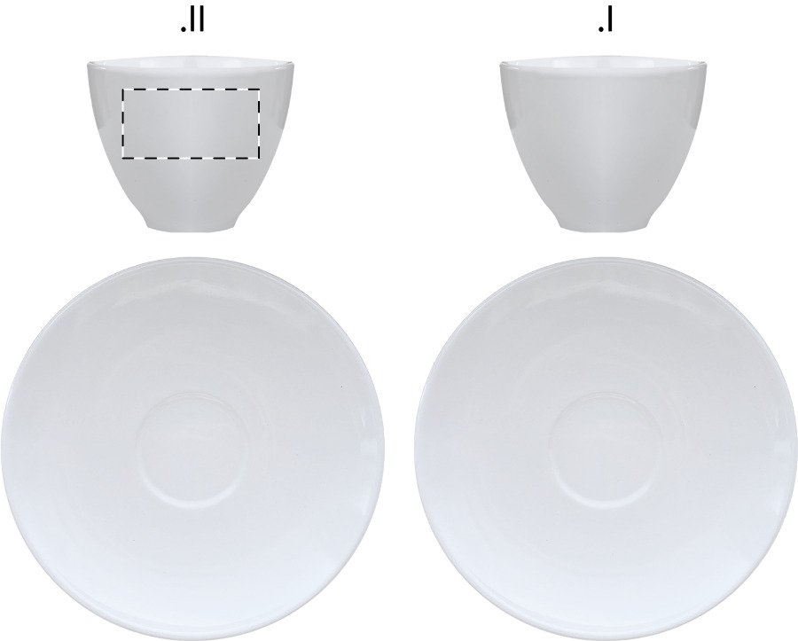 Kerámia eszpresszó szett két csészével és alátéttel, 90 ml. Fehér papírdobozban szállítjuk.