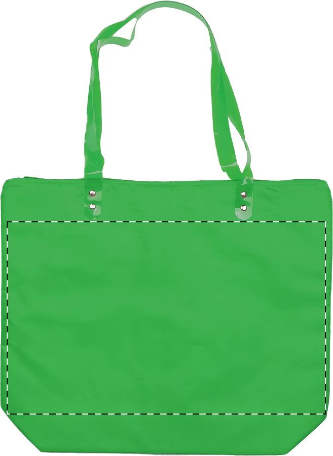 Cipzáras strandtáska átlátszó PVC fülekkel. 210D poliészter.