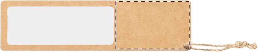 Újrahasznosított papír könyvjelző, nagyítós betéttel és zsinórral.