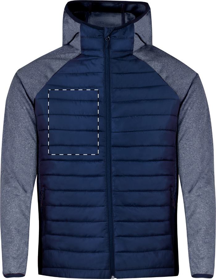 Légáteresztő, szél- és vízálló cipzáras dzseki, puha softshell és poliészter kombinációban, kapucnival és 2 cipzáras oldalsó zsebbel.