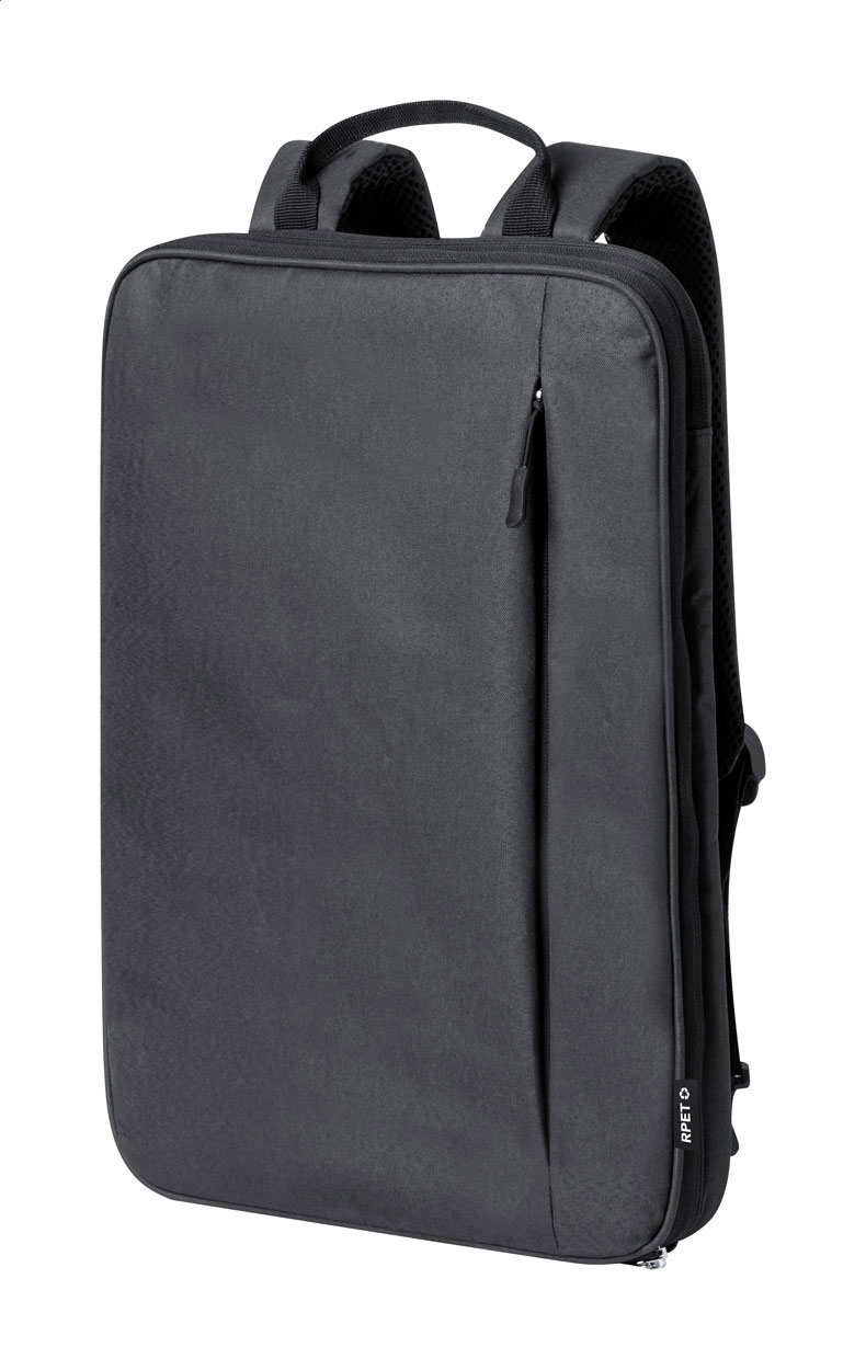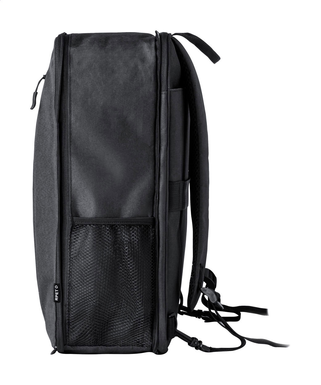 Bővíthető RPET hátizsák cipzáras rekeszekkel, párnázott laptop (15") és tablet (10") rekesszel, párnázott hát- és vállpántokkal. 300D RPET poliészter, megkülönböztető RPET címkével.