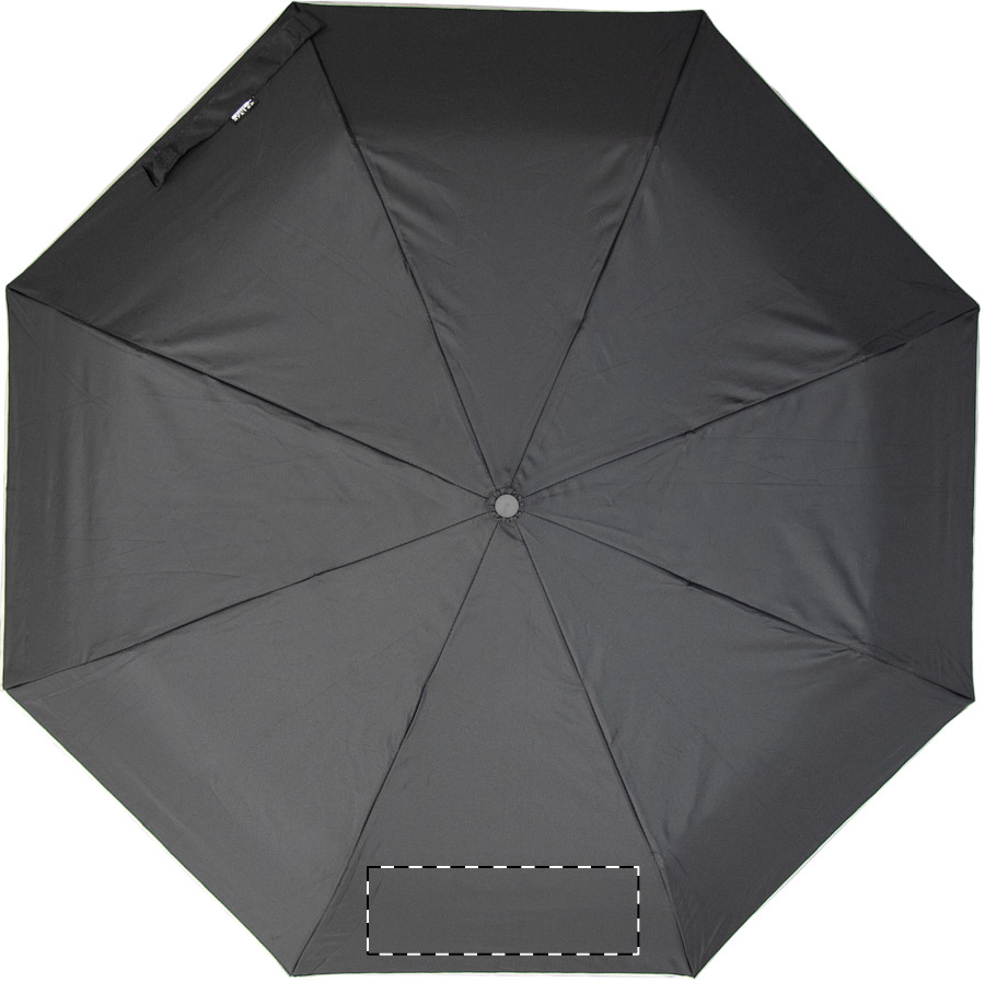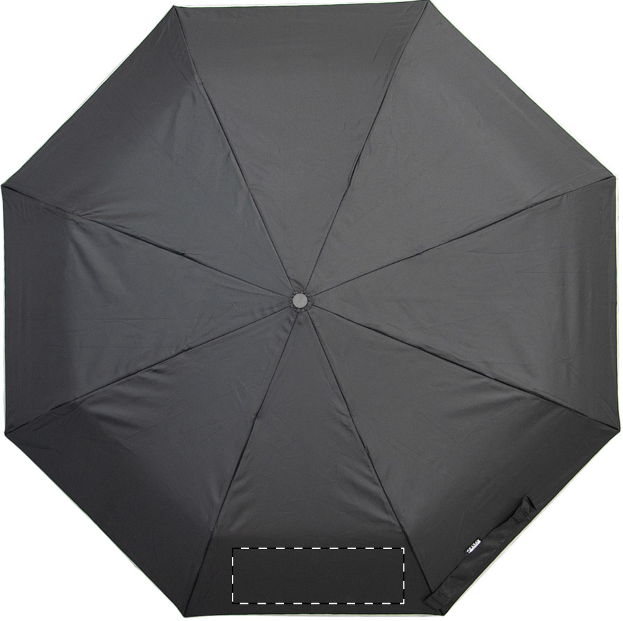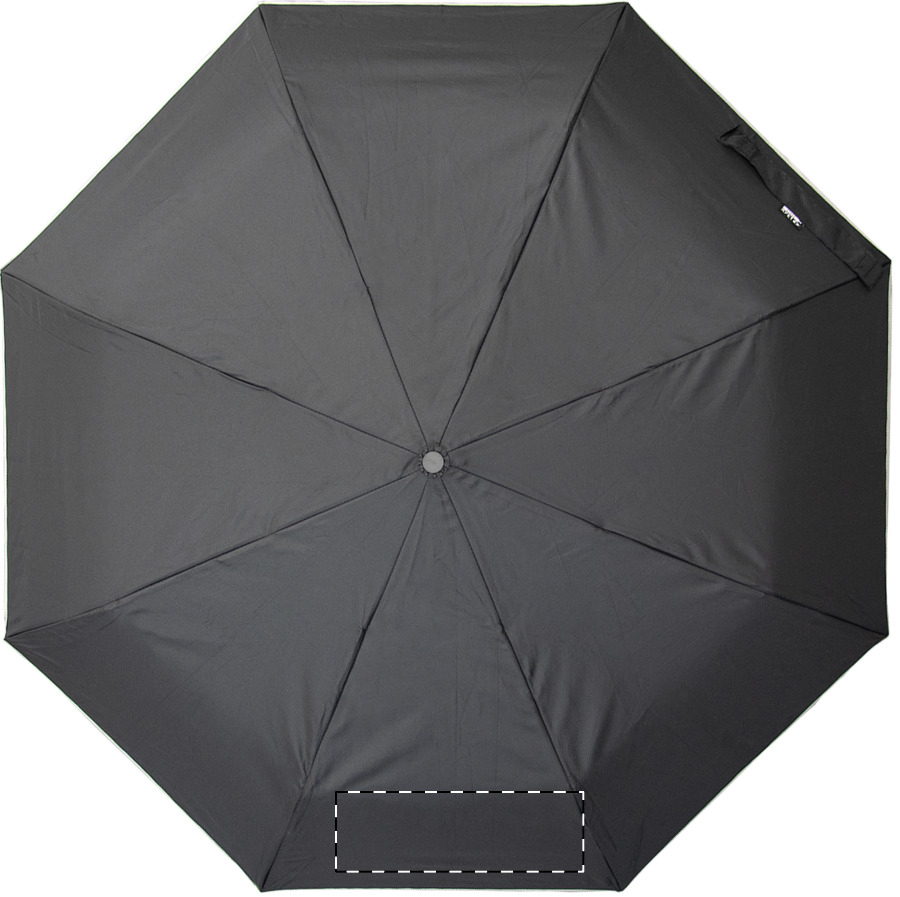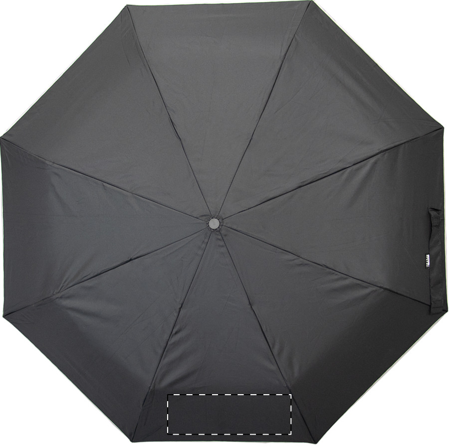 Teljesen automata (nyitás/zárás), szélálló, összecsukható esernyő 8 panellel, ezüst díszítéssel. Fém vázzal, üvegszálas bordákkal, gumírozott fogantyúval, csuklópánttal és hordtáskával. 190T RPET pongee. Megkülönböztető RPET címkével. Márkás, cipzáras, kemény tokban. André Philippe márkatermék.