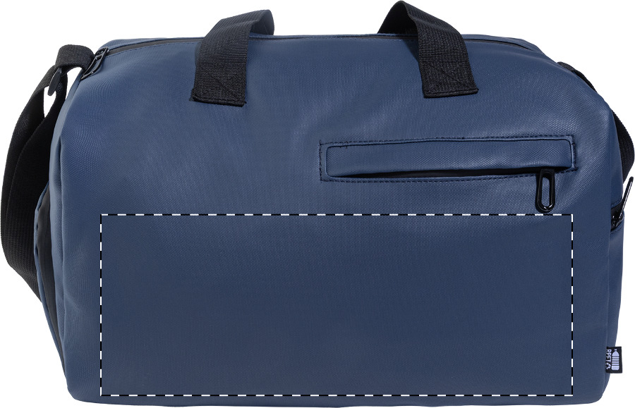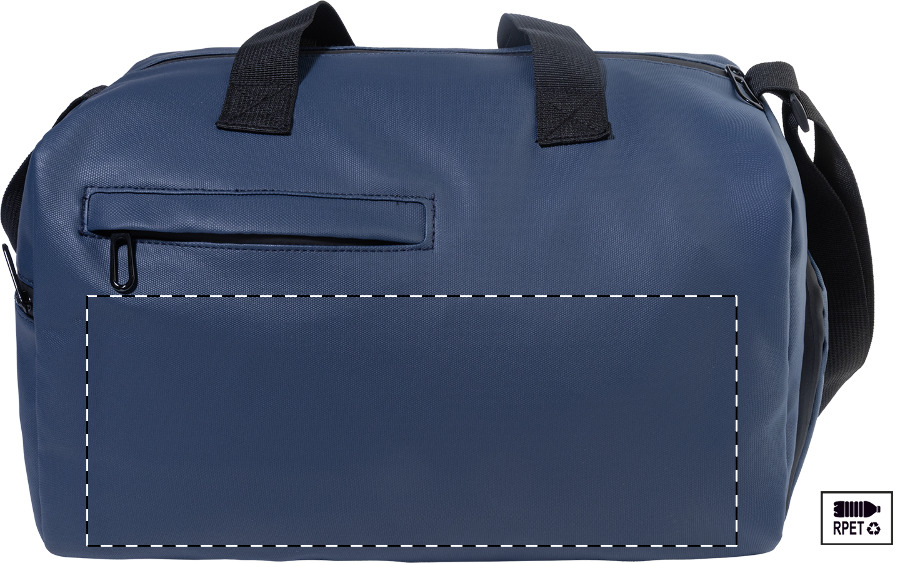 Vízálló, RPET sporttáska cipzáras fő rekesszel, cipzáras elülső zsebbel, cipzáras cipőtartó rekesszel és állítható vállpánttal. PU bevonatú 600D RPET poliészterből, megkülönböztető RPET címkével.