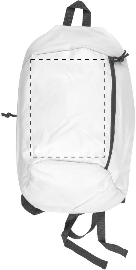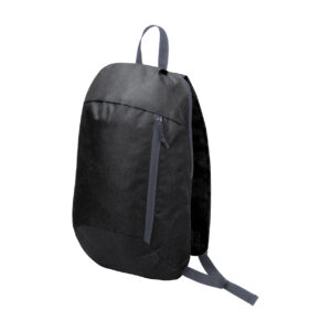 600D poliészter anyagú hátizsák, párnázott hátrésszel, állítható pántokkal és elöl cipzáras zsebbel.