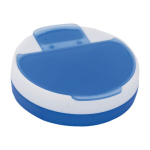 Négy rekeszes, kerek, műanyag gyógyszeradagoló.