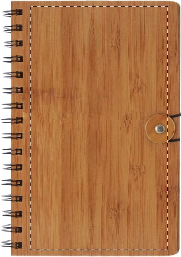 Bambuszból készült spirál jegyzettömb 80 vonalas lappal.