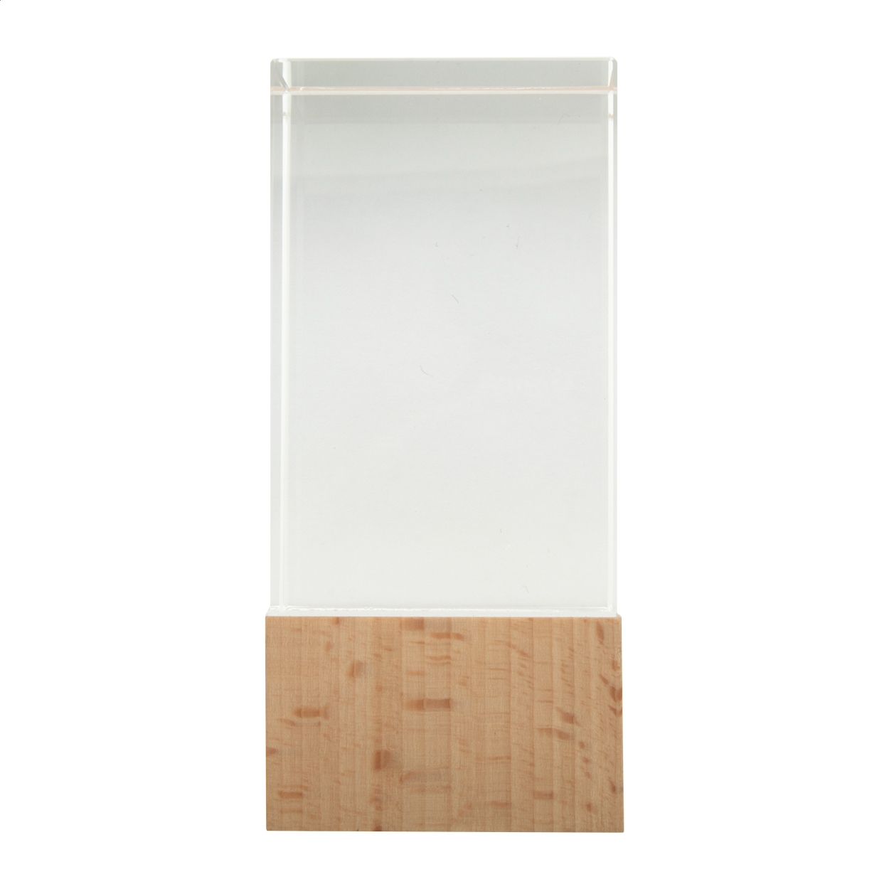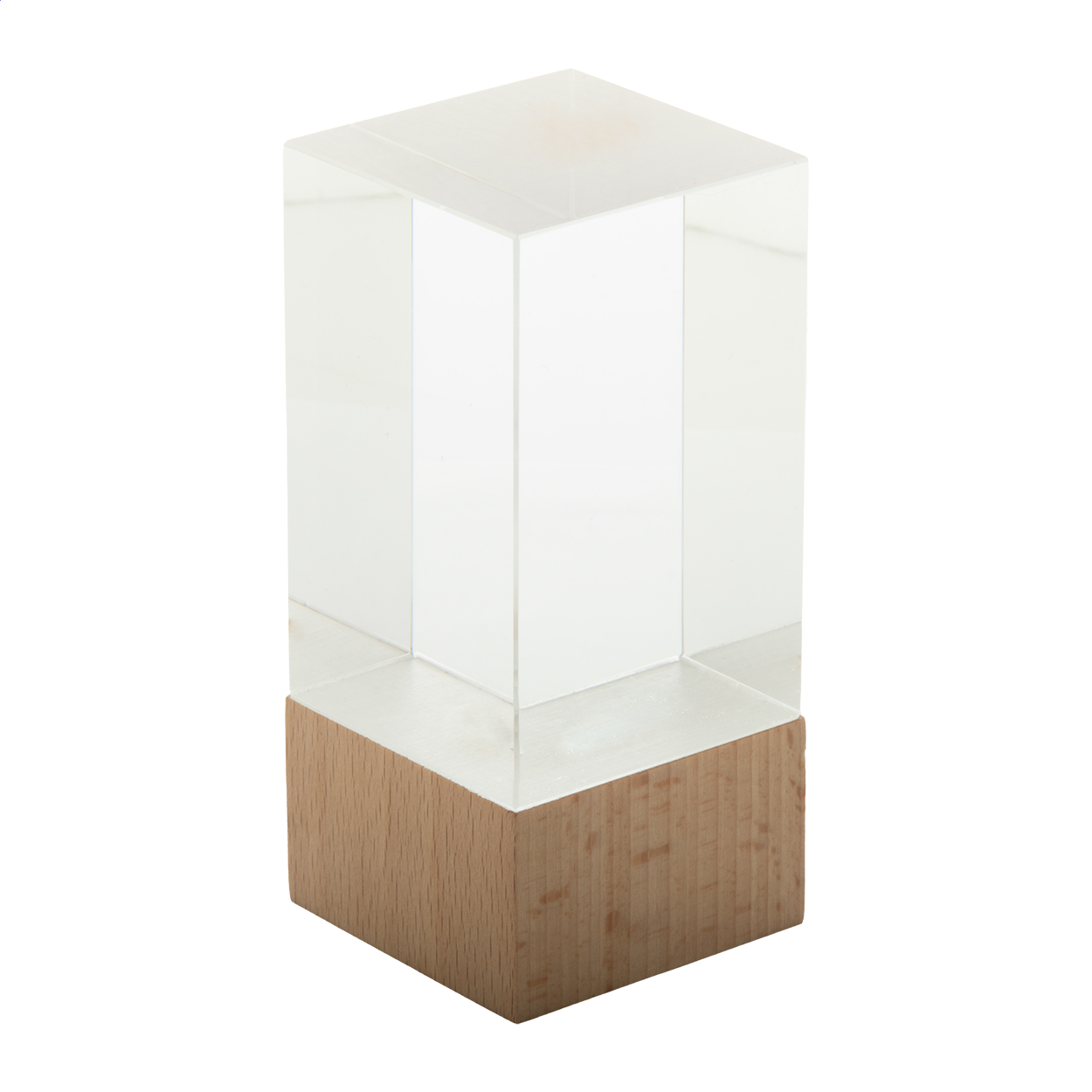 Üvegtrófea bükkfa alappal, kraft papír ajándékdobozban.