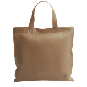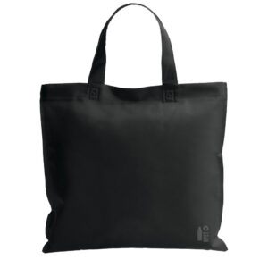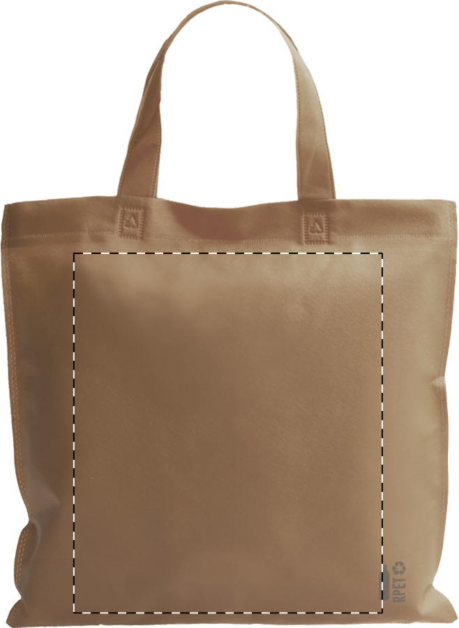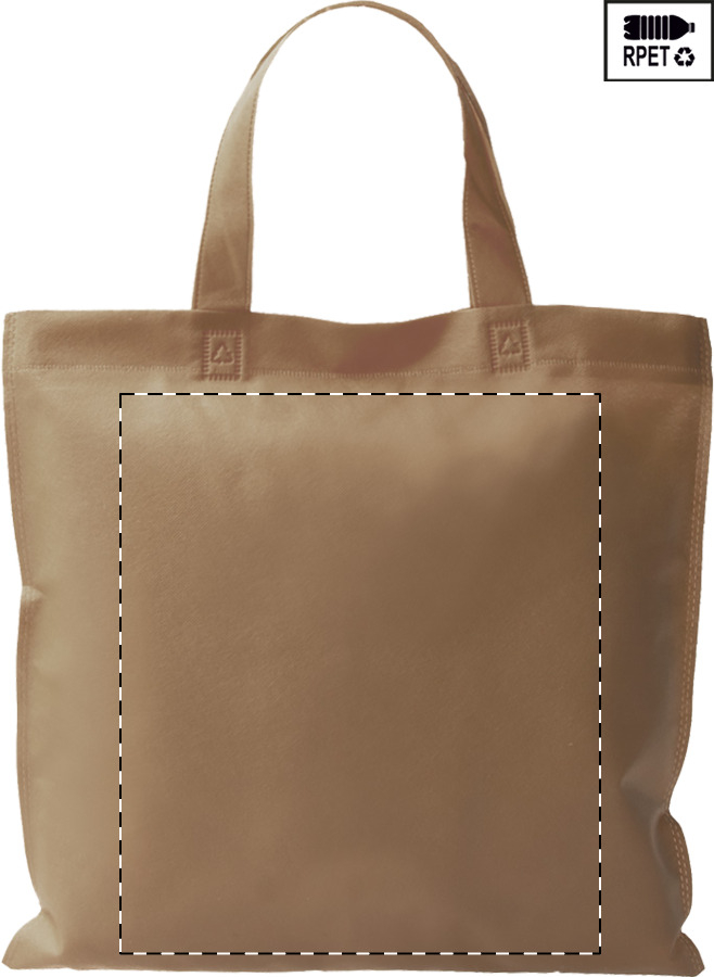 RPET non-woven bevásárlótáska közepes hordfüllel, 70 g/m². Megkülönböztető RPET címkével.