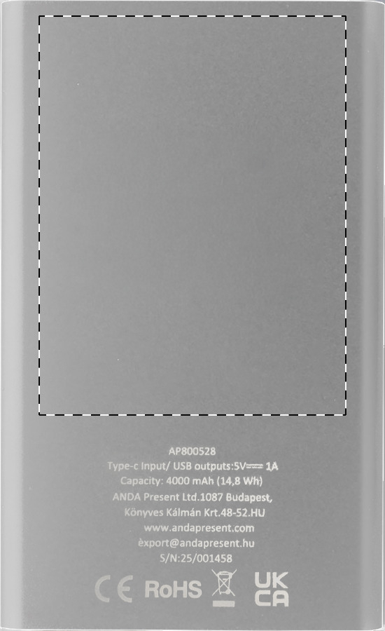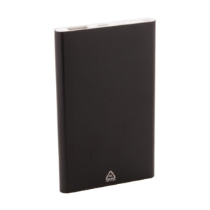 USB power bank újrahasznosított alumínium borítással és 4000 mAh-s akkumulátorral. 1 USB és 1 USB-C töltő porttal. USB-C bemeneti porttal. USB töltőkábellel szállítjuk.