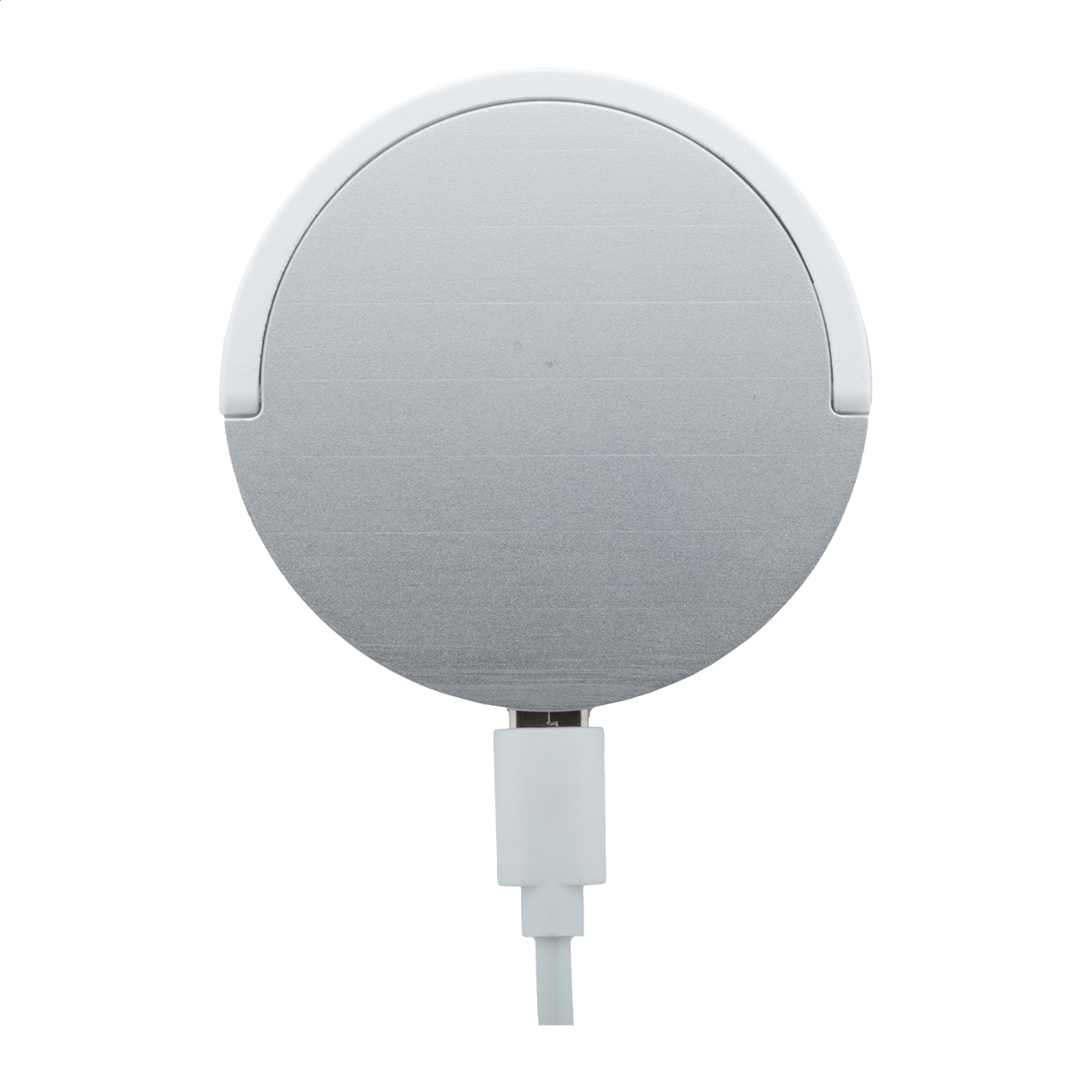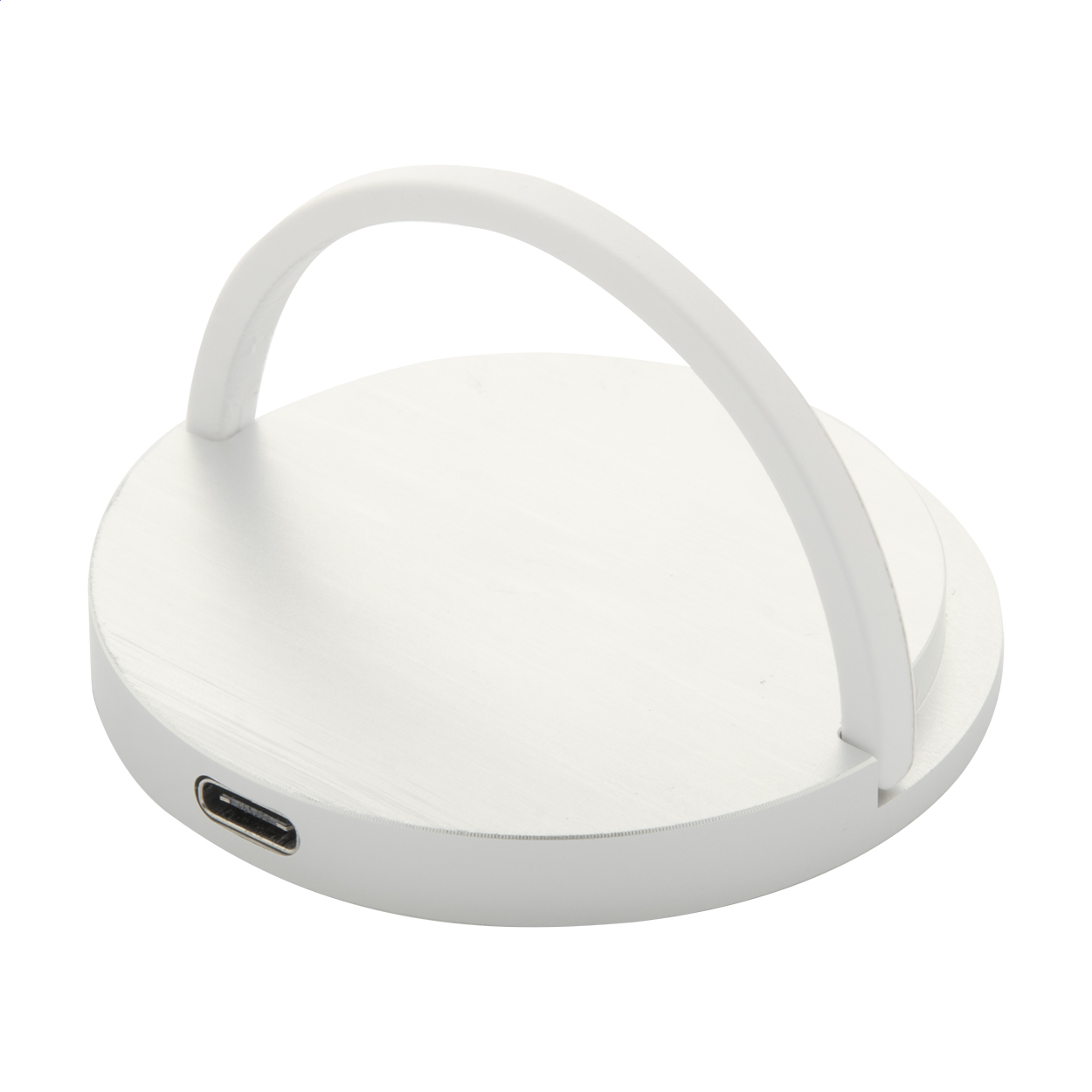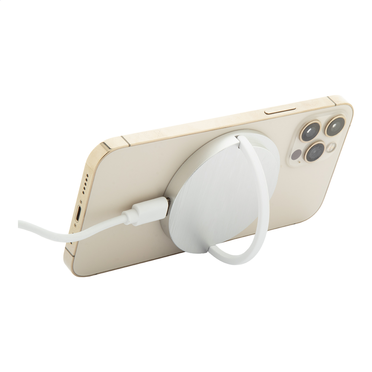 Mágneses vezeték nélküli gyorstöltő (15W) mobiltartó gyűrűvel újrahasznosított alumíniumból és újrahasznosított ABS műanyag borítással. Kompatibilis az iPhone® 12 vagy újabb készülékekkel. USB-C töltőkábellel szállítjuk.