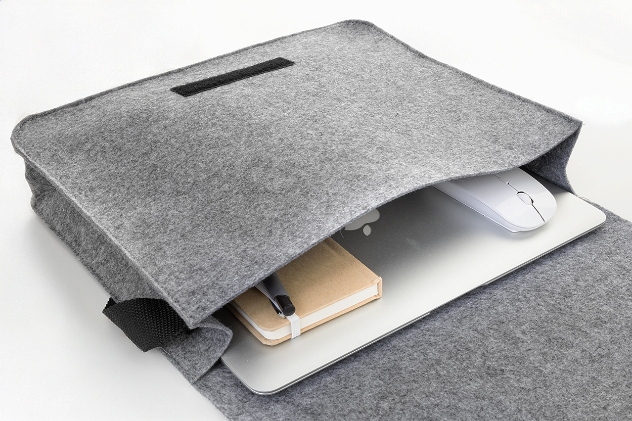 RPET filc messenger laptop táska állítható vállpánttal. Legfeljebb 15"-os laptopokhoz használható, megkülönböztető RPET címkével.