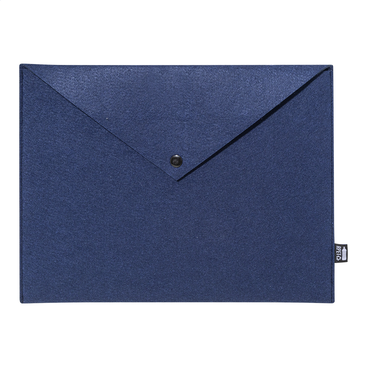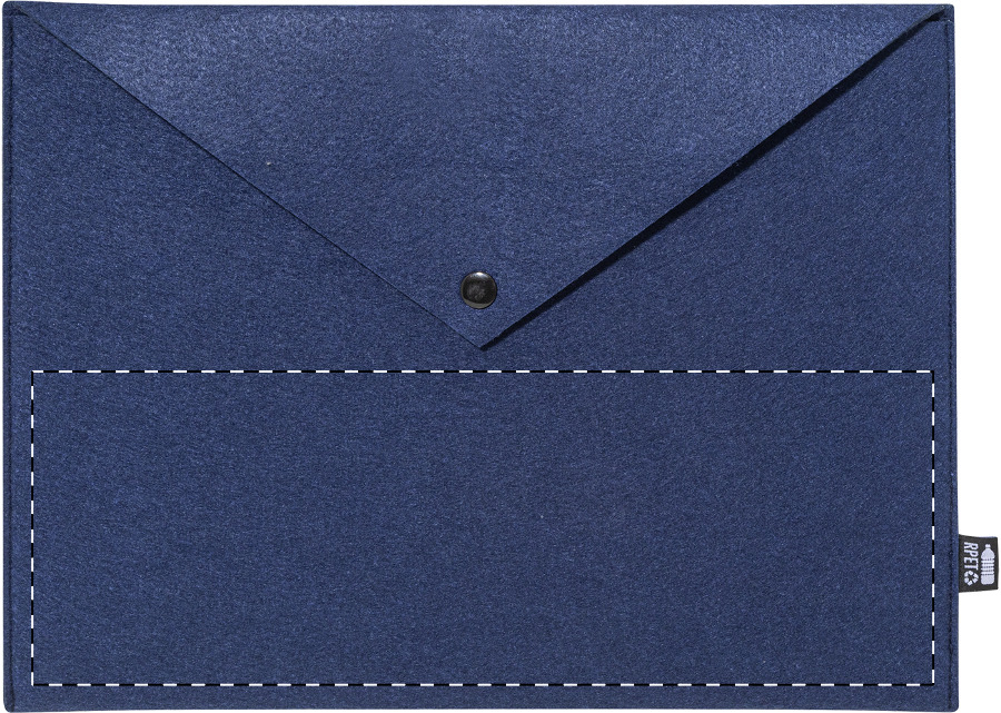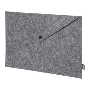 RPET filcből készült irattáska vagy laptoptáska gombos záródással. Legfeljebb 13"-os laptopokhoz alkalmas. Megkülönböztető RPET címkével.