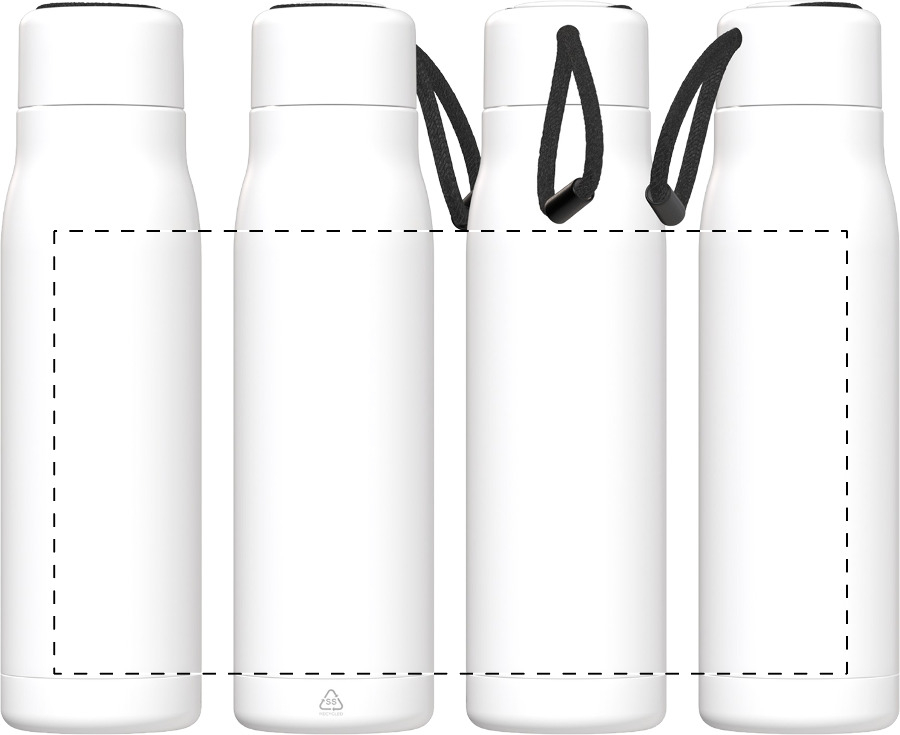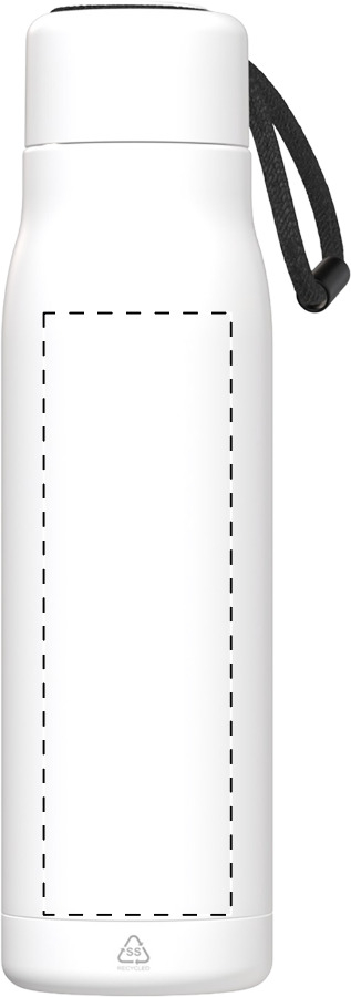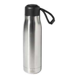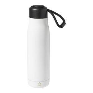 Duplafalú, újrahasznosított rozsdamentes acélból készült, vákuumszigetelt termosz PP tetővel és beépített hordpánttal. 500 ml.