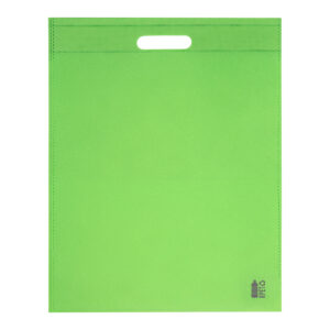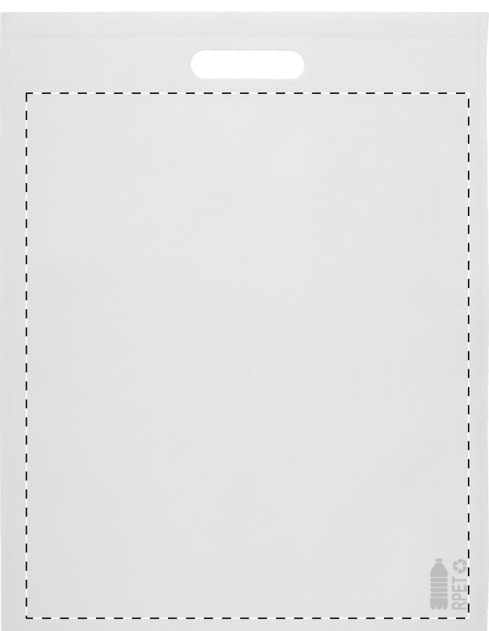 RPET non-woven bevásárlótáska kivágott hordfüllel, 70 g/m². Megkülönböztető RPET felirattal.