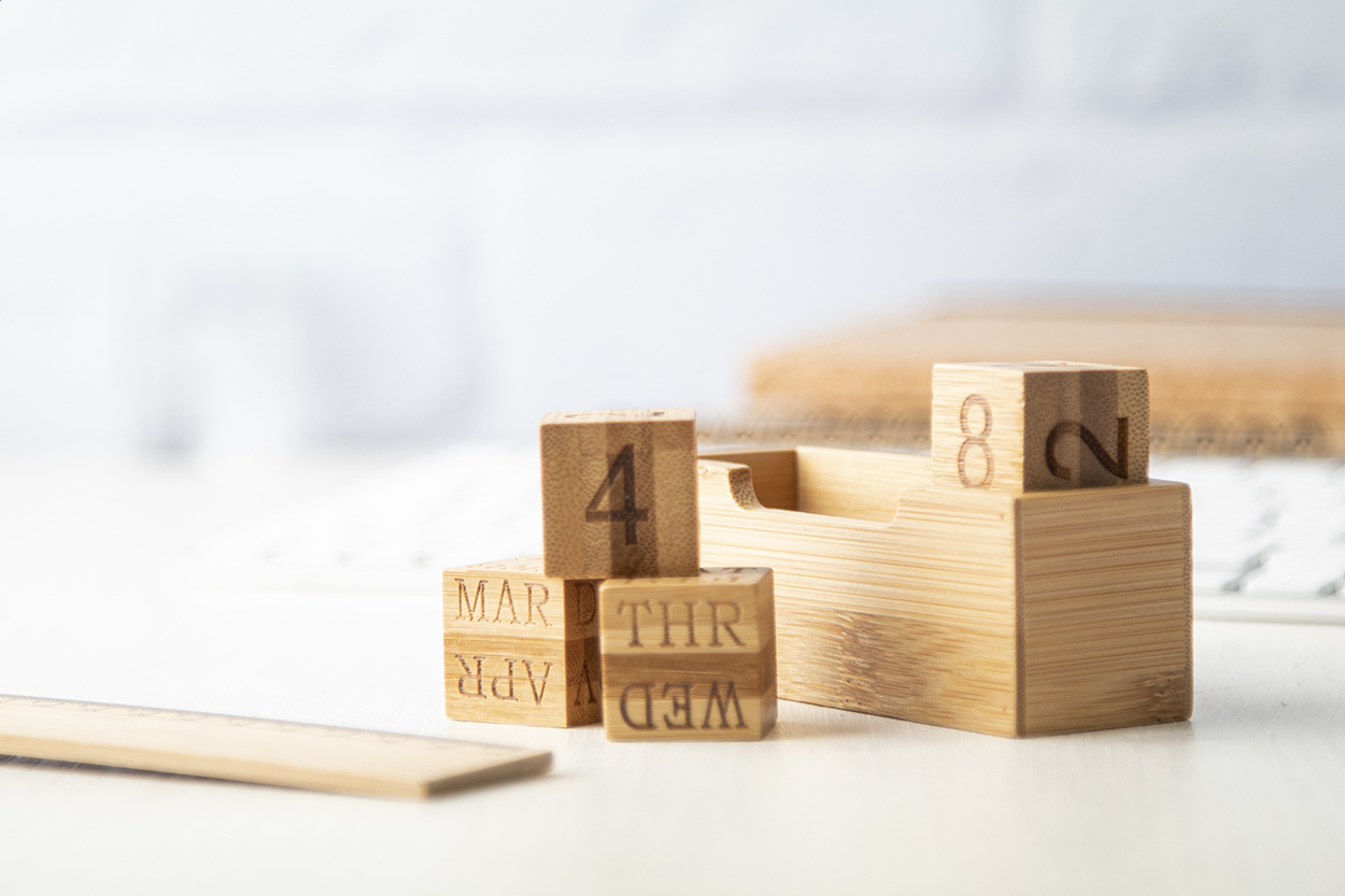 Bambusz asztali naptár, 4 kockát tartalmaz.