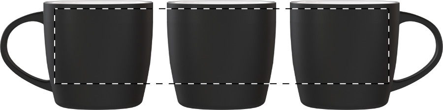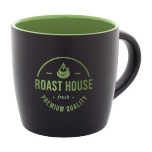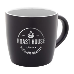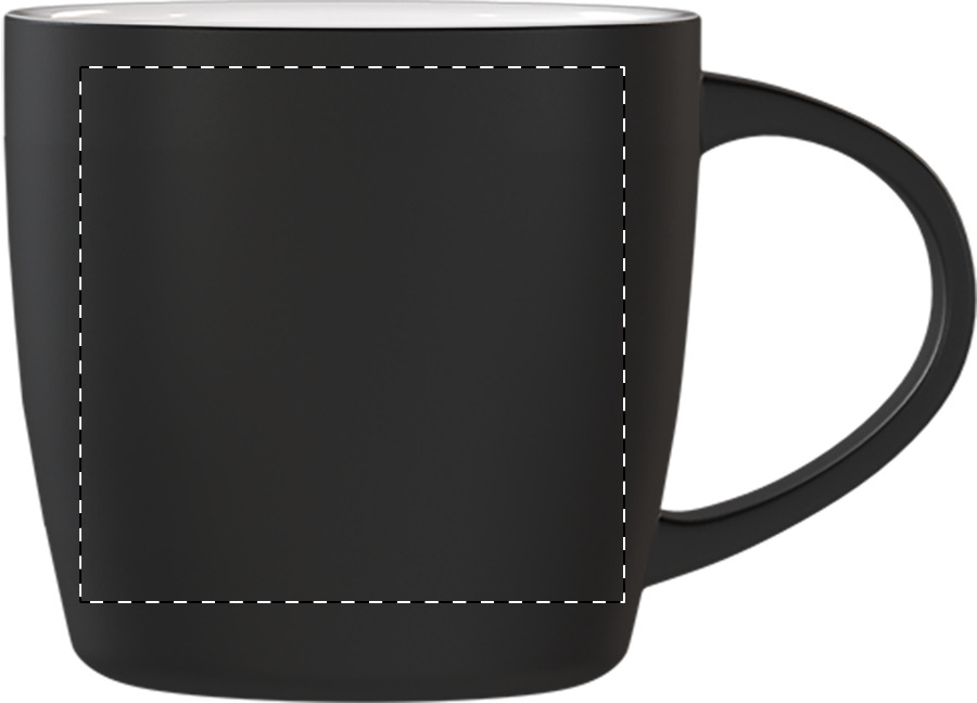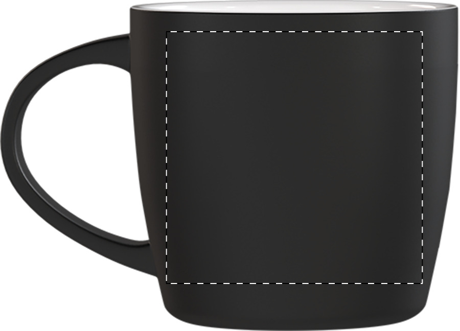 Fekete kerámia bögre színes belsővel, 300 ml. Speciális bevonattal rendelkezik, a gravírozott logó megegyezik a belső színnel. Kraft papír dobozban.