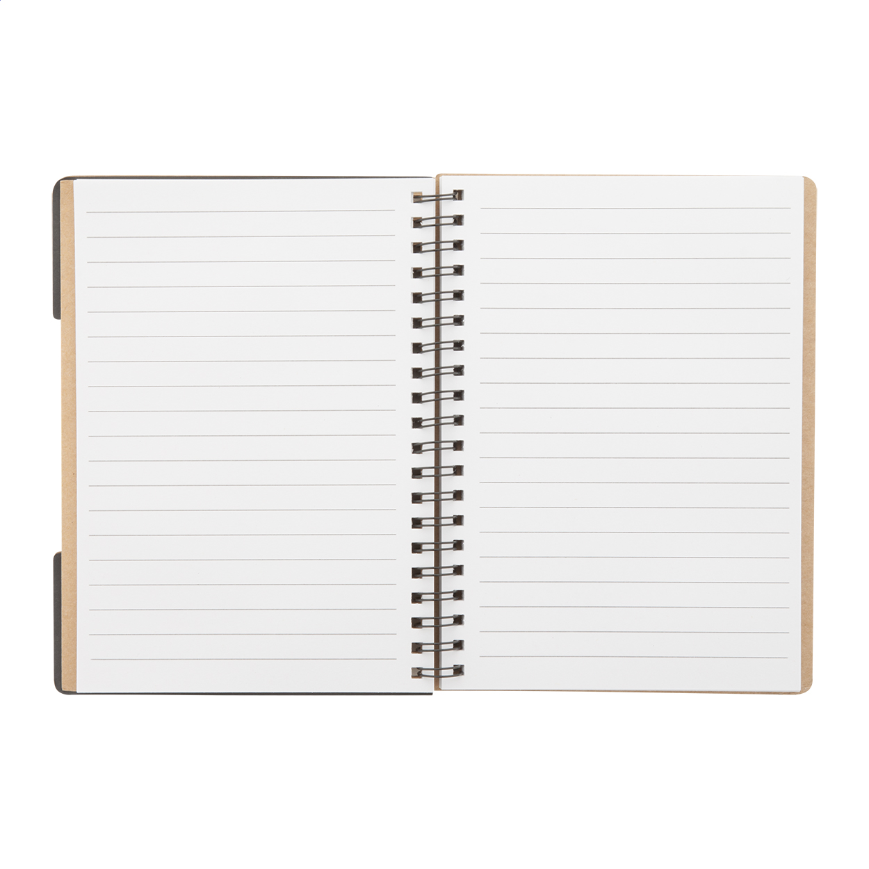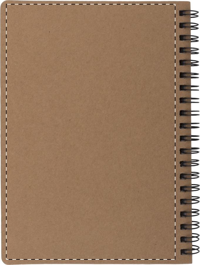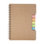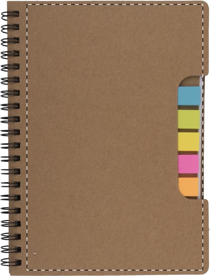 Újrahasznosított papírból készült jegyzetfüzet 60 vonalas lappal, az elején 5×25 db színes öntapadós jegyzetjelölő csíkkal.