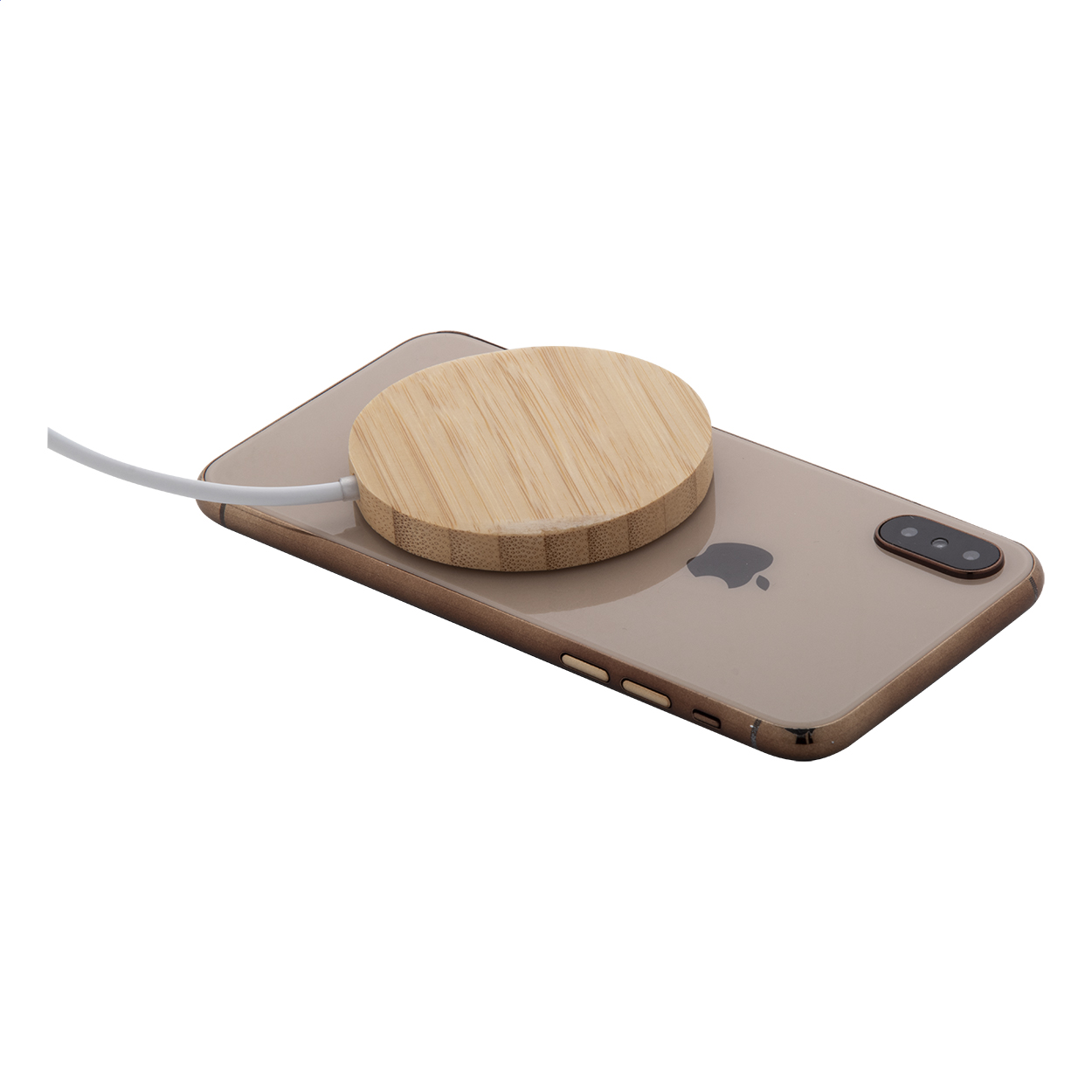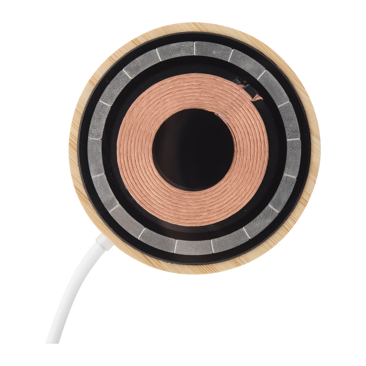 Mágneses vezeték nélküli gyorstöltő (15W) bambusz és átlátszó műanyag házban, látható elektronikus alkatrészekkel. Öntapadós fémgyűrűvel a mágneses funkció használatához, bármilyen vezeték nélkül tölthető eszközhöz. Kompatibilis az iPhone® 12 vagy újabb készülékekkel. USB-C töltőkábellel sszállítjuk.