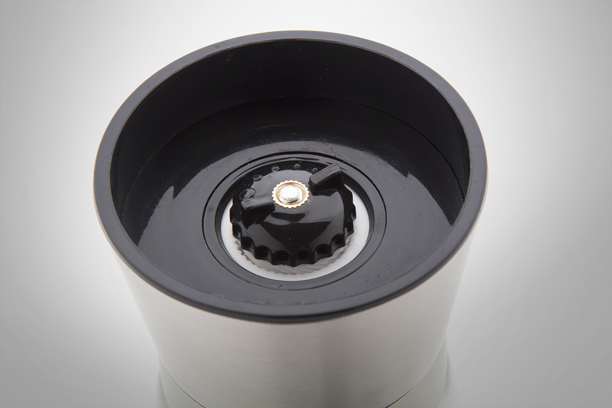 Manuális, rozsdamentes só- és borsörlő kerámia részletekkel és üveg tartóval, 180 ml.