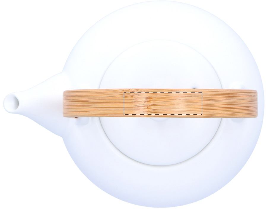 Kerámia teakészlet. Egy teáskannát bambusz fogantyúval (600 ml) és két csészét (110 ml) tartalmaz. Kraft papír dobozban szállítjuk.