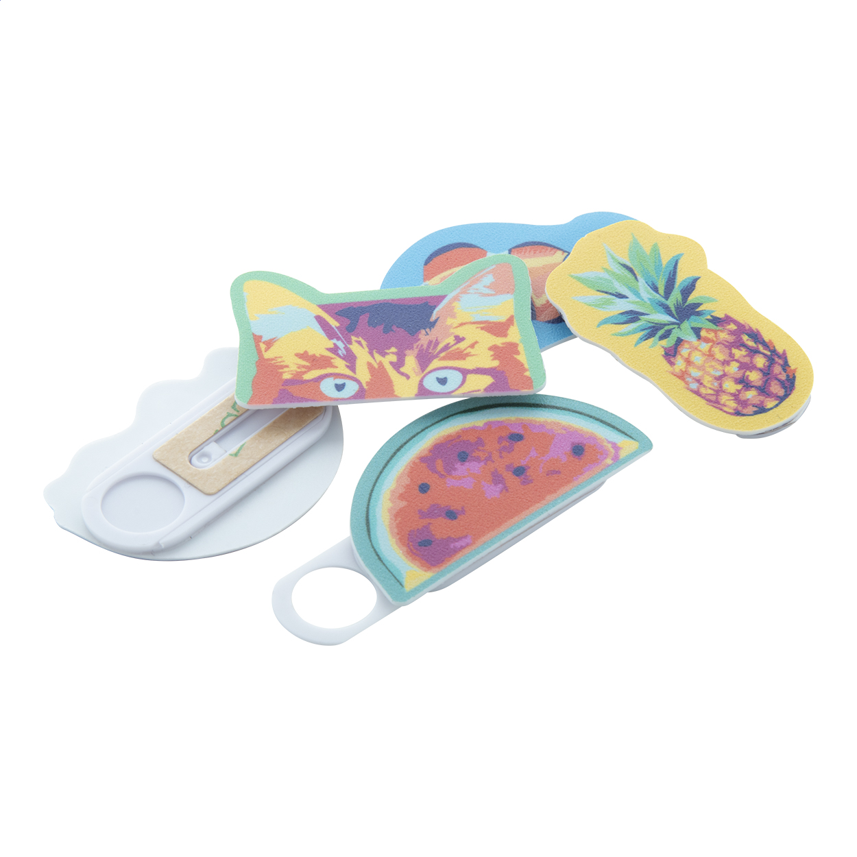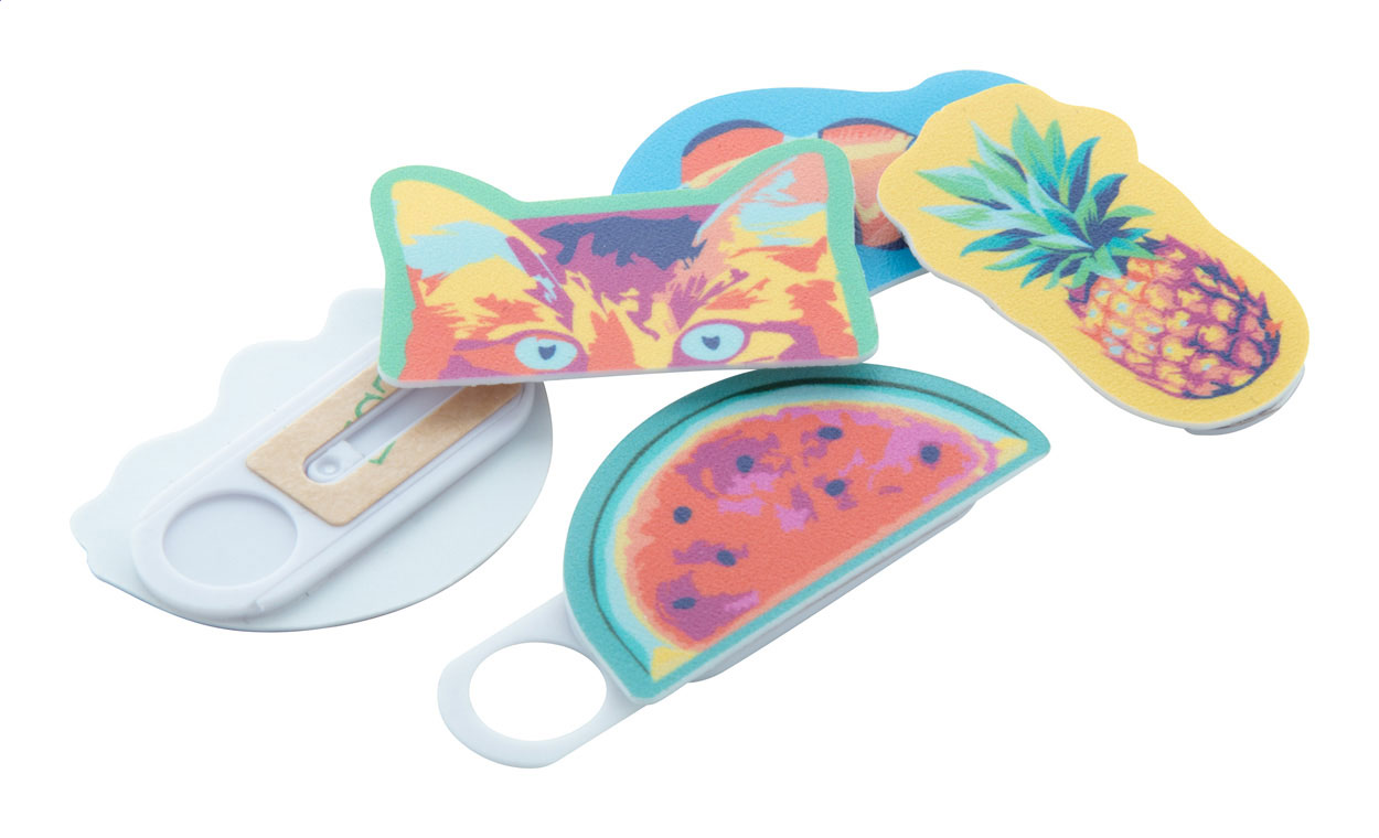 Műanyag webkamera kitakaró egyedien formázható, színes borítással. (maximum méret: 50×25 mm). Csúsztatható fedővel és levehető hátoldallal. Az ár tartalmazza a digitális nyomtatást az elülső oldalra és az UV LED nyomtatást. Minimális rendelési mennyiség: 100 db.