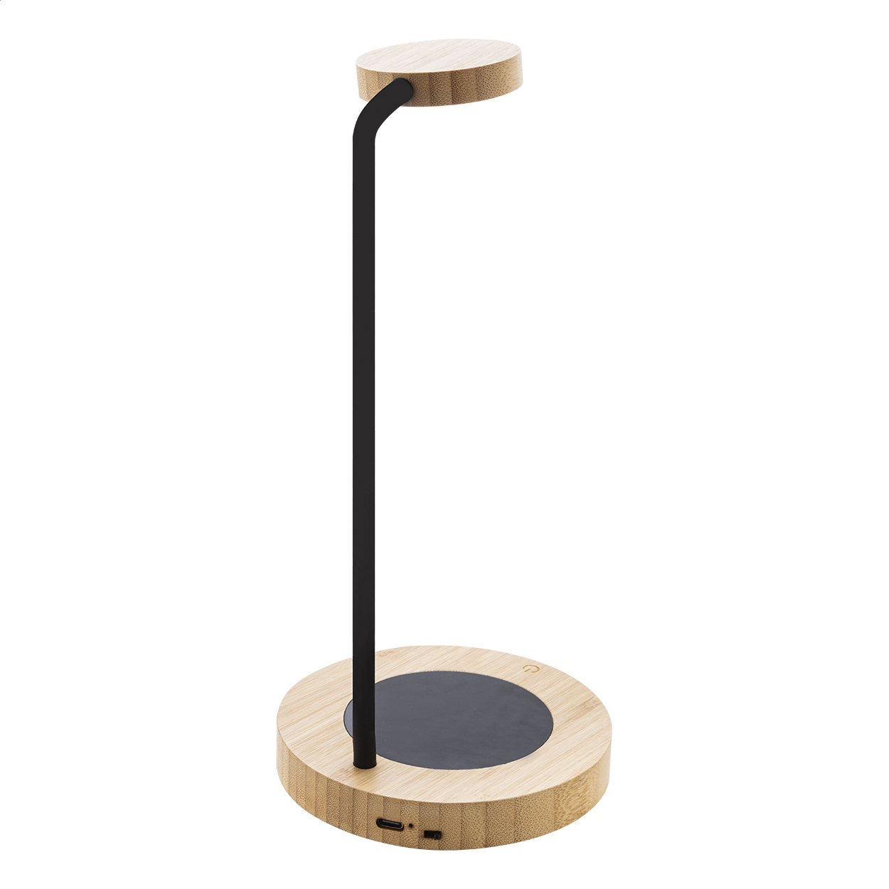Bambuszból készült multifunkcionális asztali lámpa beépített bögremelegítővel. Meleg, természetes és hideg fény módokkal. USB töltőkábellel.