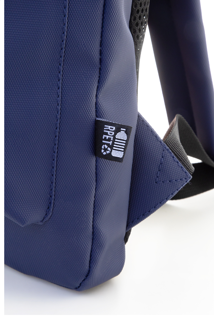 Vízálló RPET vékony laptop hátizsák cipzáras laptoprekesszel (15") és cipzáras elülső zsebbel. Párnázott hát- és vállpántokkal. Műbőr bevonatú 600D RPET poliészter, megkülönböztető RPET címkével.
