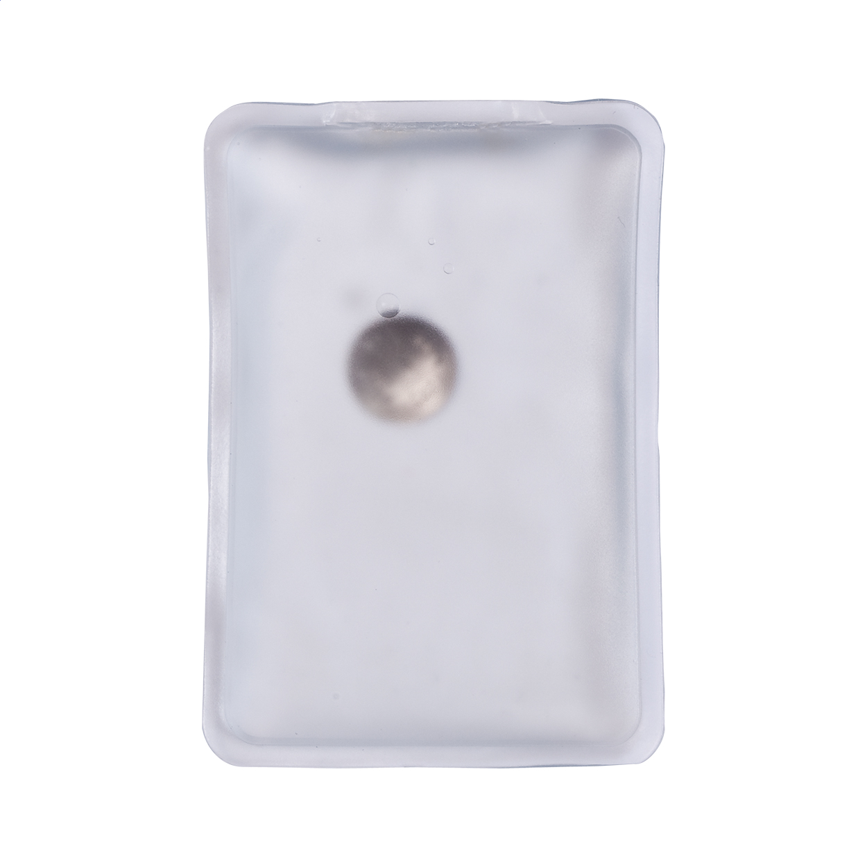 Áttetsző, többször használható melegítő tasak, színes folyadékkal.