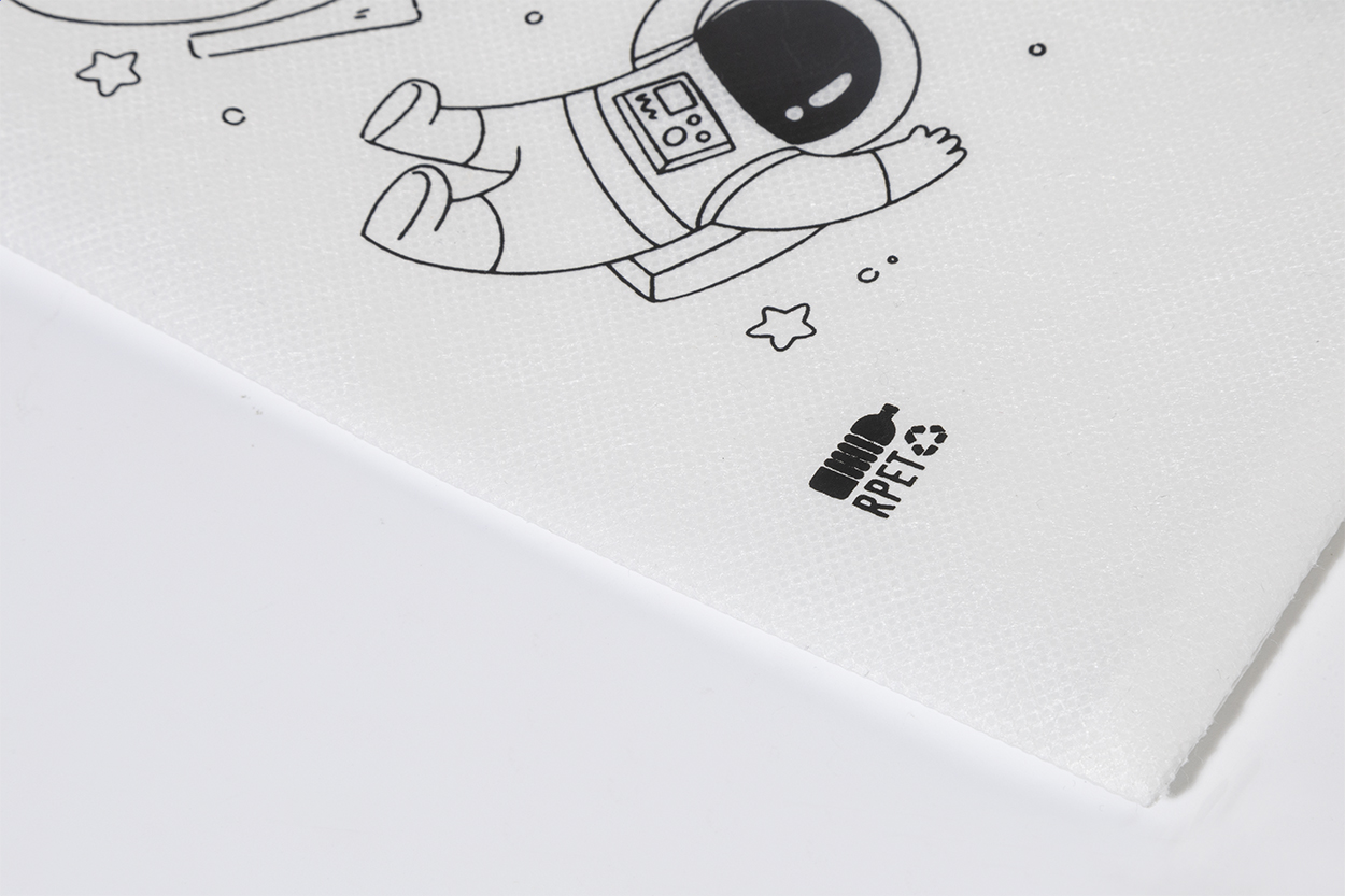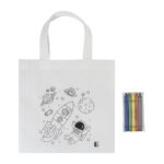 RPET non-woven anyagú, színezhető mini bevásárlótáska gyerekeknek 5 zsírkrétával.