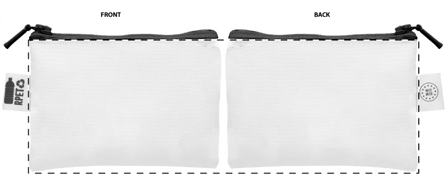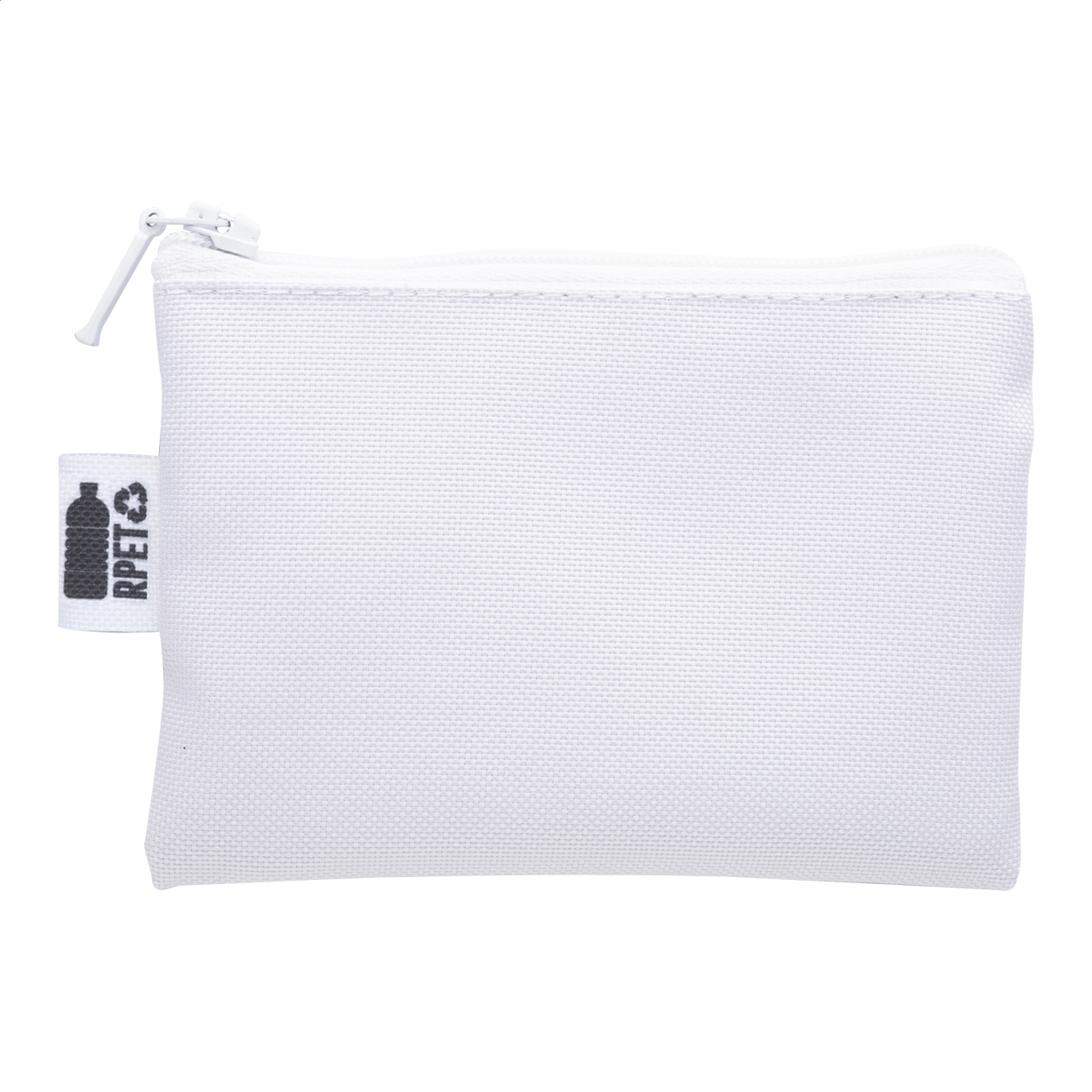 Egyedi gyártású, cipzáras RPET pénztárca RFID védelemmel, 600D poliészter anyagból, megkülönböztető RPET jelzéssel. Teljes felületén szublimációs eljárással emblémázva. Minimális rendelési mennyiség: 50 db.