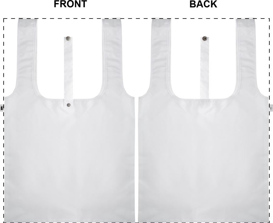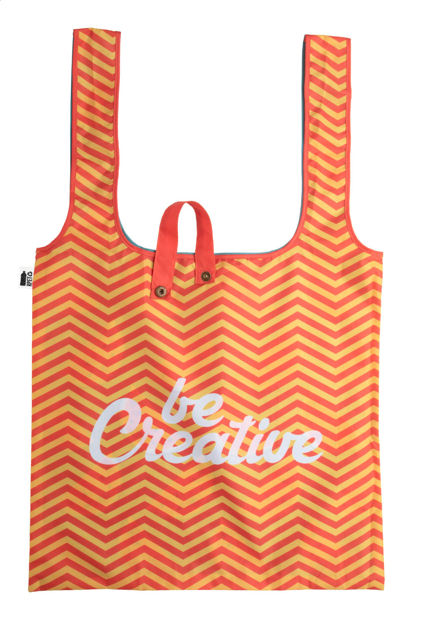 Egyedi gyártású, RPET pongee anyagból készülő összehajtható bevásárlótáska. Mindkét oldal teljes felületén szublimációs eljárással emblémázva, megkülönböztető RPET címkével. Minimális rendelési mennyiség: 25 db.