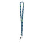 Egyedi, 15 mm széles RPET műanyag nyakpánt fém karabinerrel és mobiltelefon-tartóval. Szublimációs eljárással nyomtatott grafikával mindkét oldalon. Min. rendelés: 100 db.