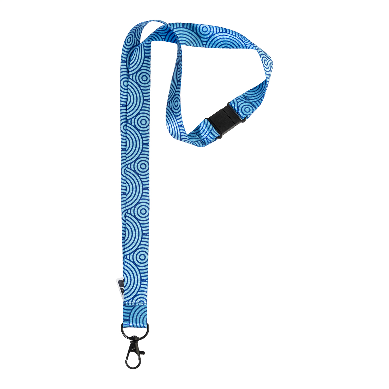 Egyedi gyártású, RPET nyakpánt színes fém karabinerrel és biztonsági csattal. Mindkét oldalon szublimációs nyomtatott grafikával. Minimális rendelési mennyiség: 100 db.
