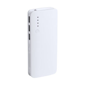 Műanyag USB power bank 3 csatlakozóval és 10000 mAh akkumulátorral. Töltőkábel nélkül szállítjuk.
