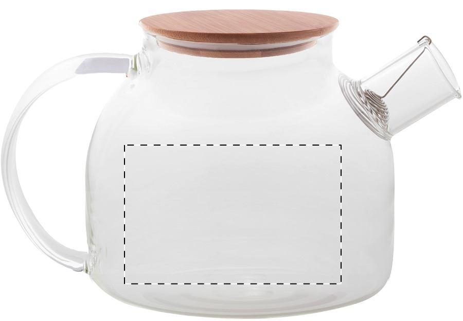 Boroszilikát üveg teáskanna bambusz fedéllel és rozsdamentes acél teaszűrővel, kraft papír dobozban. 1000 ml.