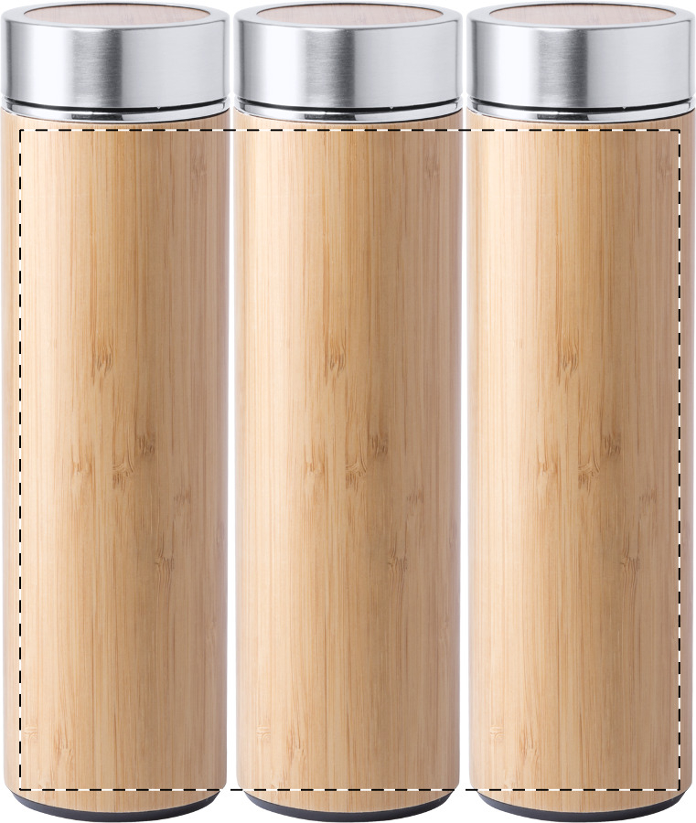 Duplafalú rozsdamentes acél és bambusz termosz. 500 ml.