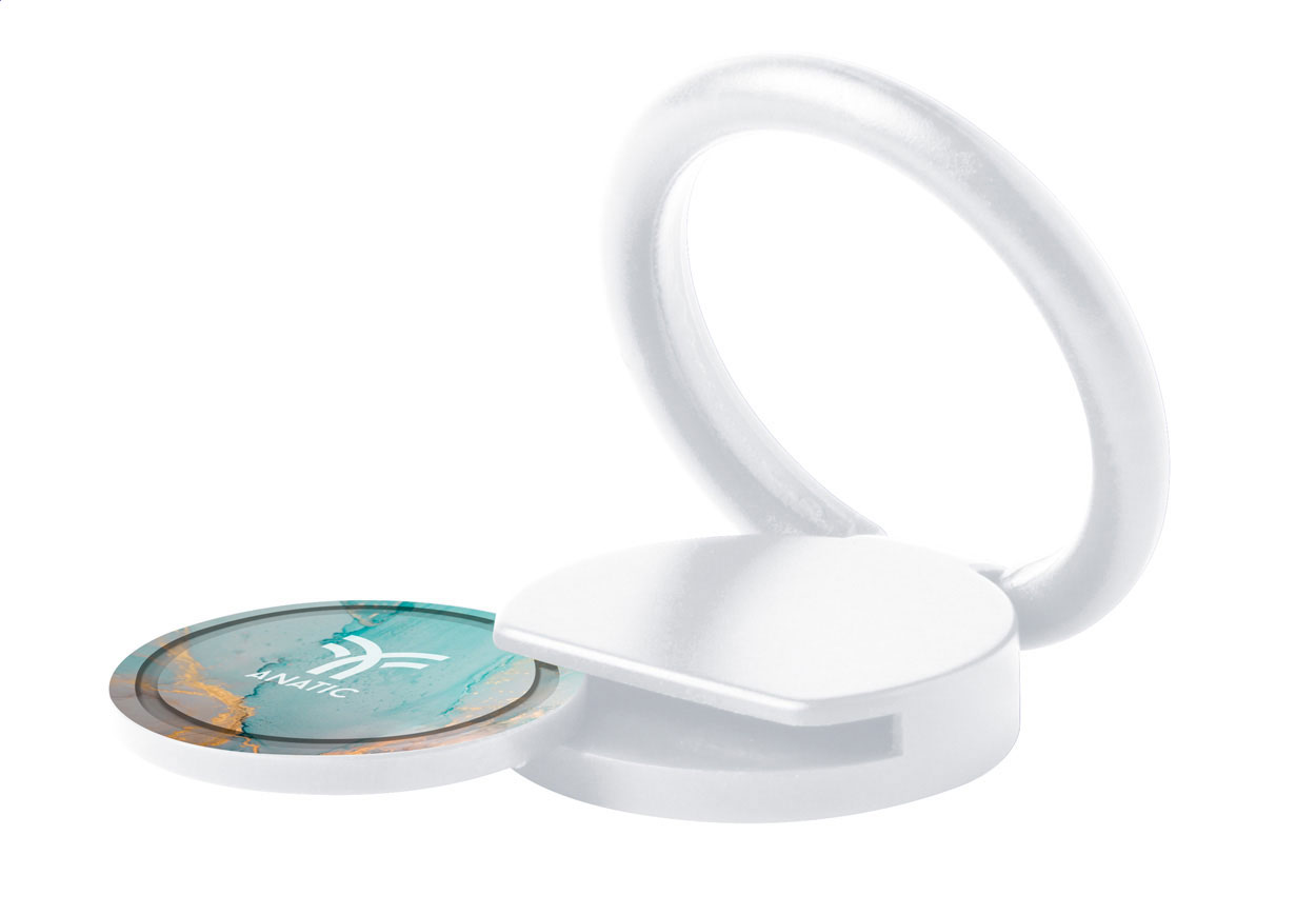 Kerek, műanyag mobiltartó, öntapadós alappal és bevásárlóérmével.