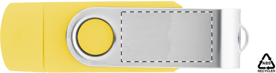 Összecsukható OTG USB memória újrahasznosított ABS műanyag és fém borítással, 8/16/32 GB memóriával. USB és USB-C csatlakozókkal. USB 2.0.