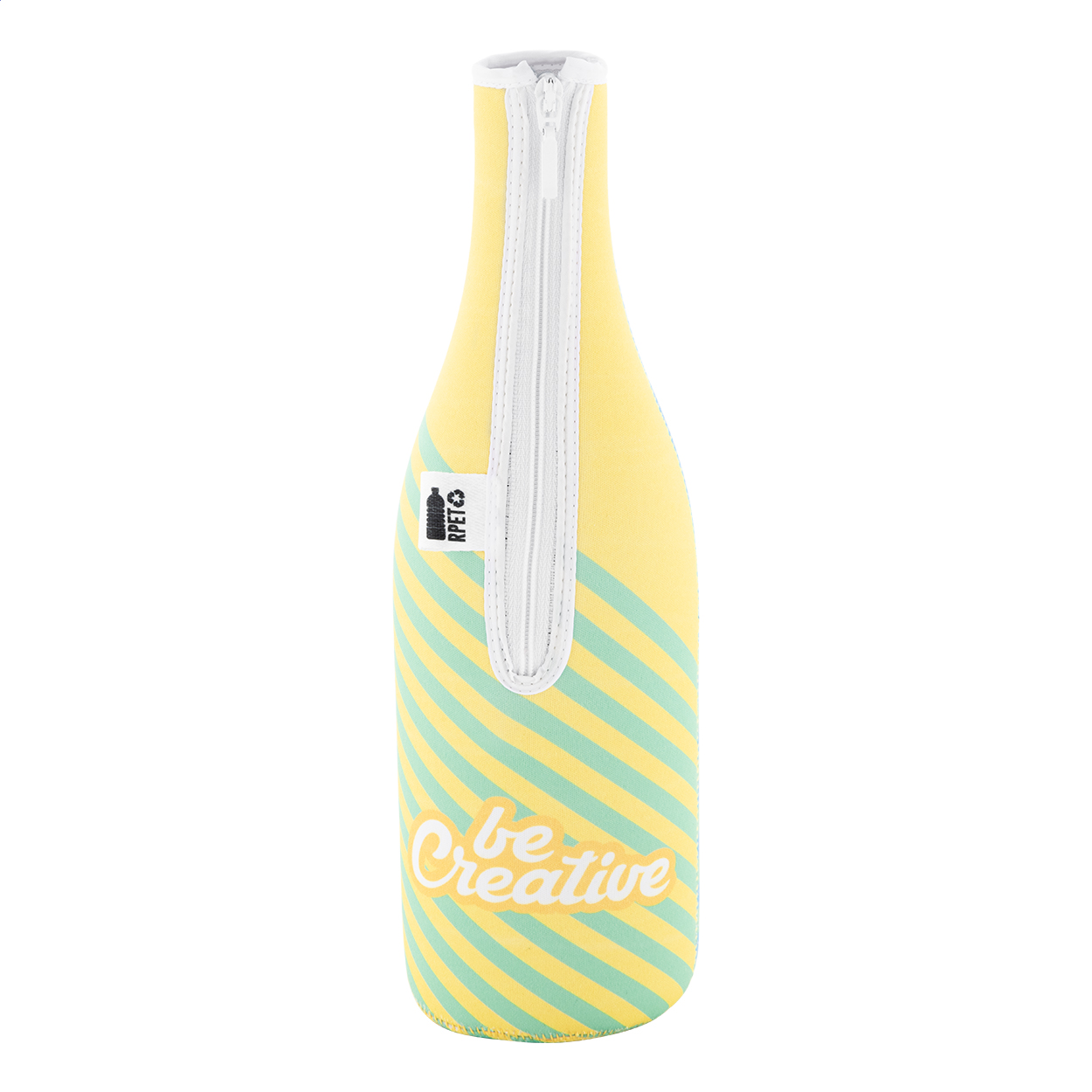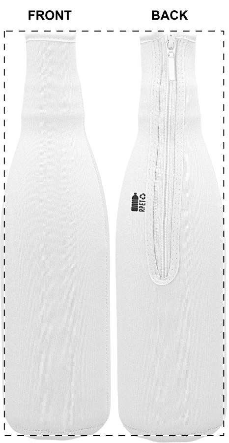 Egyedi gyártású, cipzáras RPET neoprén hűtő borítás boros- vagy pezsgősüveghez. Teljes felületén szublimációs nyomtatott grafikával. Minimális rendelési mennyiség: 25 db.