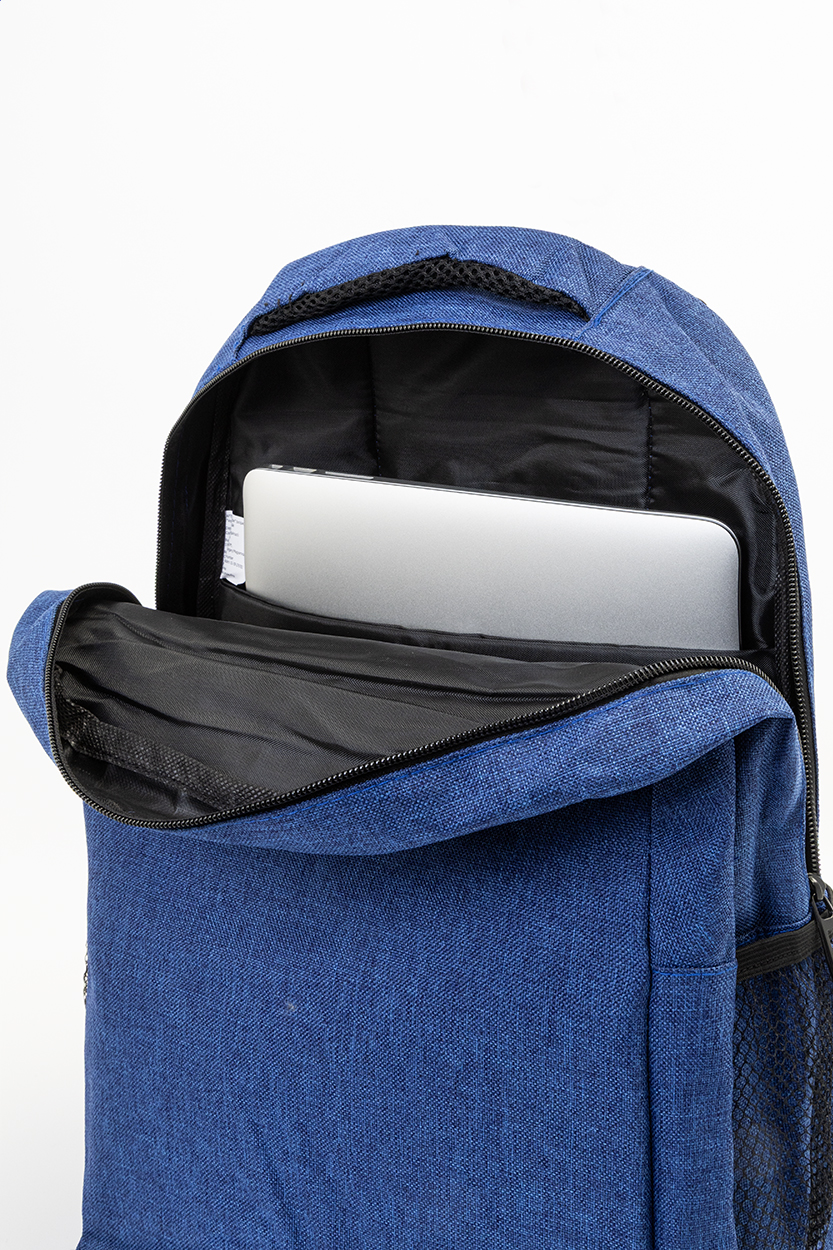Hátizsák cipzáras rekesszel, párnázott hátsó résszel és vállpántokkal, laptoptartó rekesszel (15"). 600D poliészter.