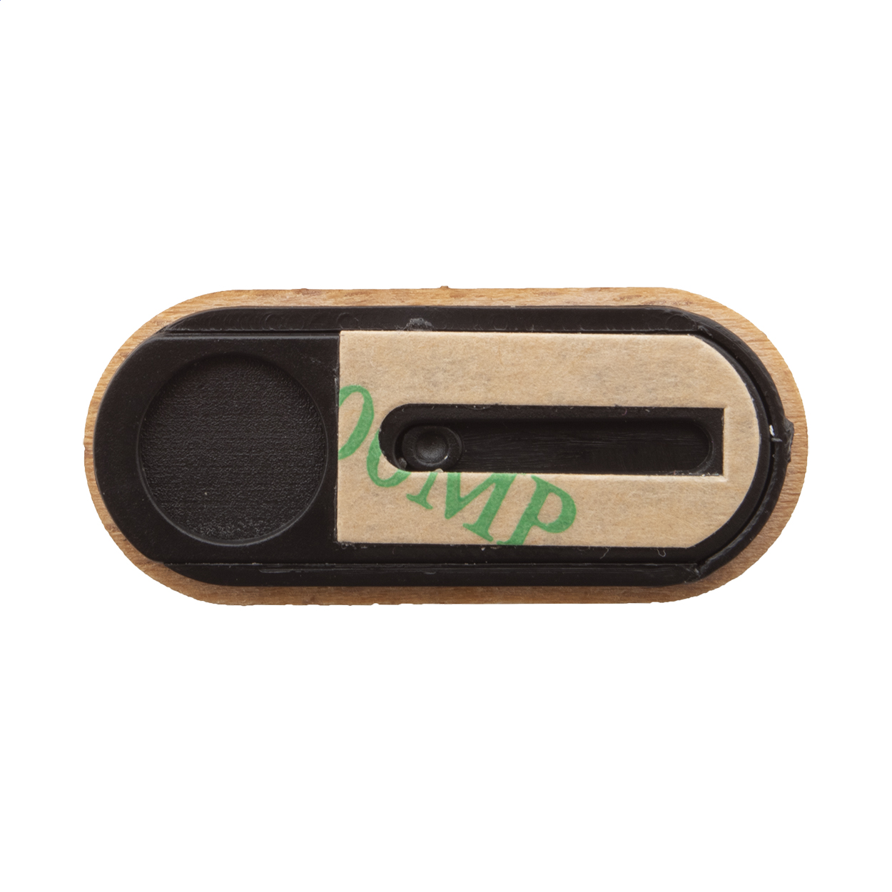 Webkamera kitakaró fa borítással, csúsztatható fedővel és öntapadós hátlappal.